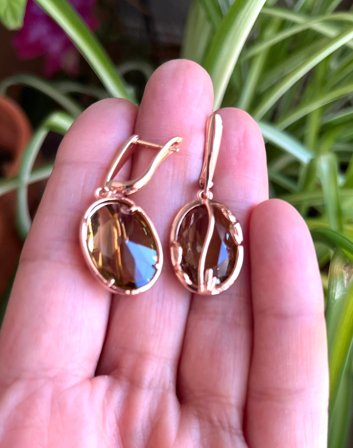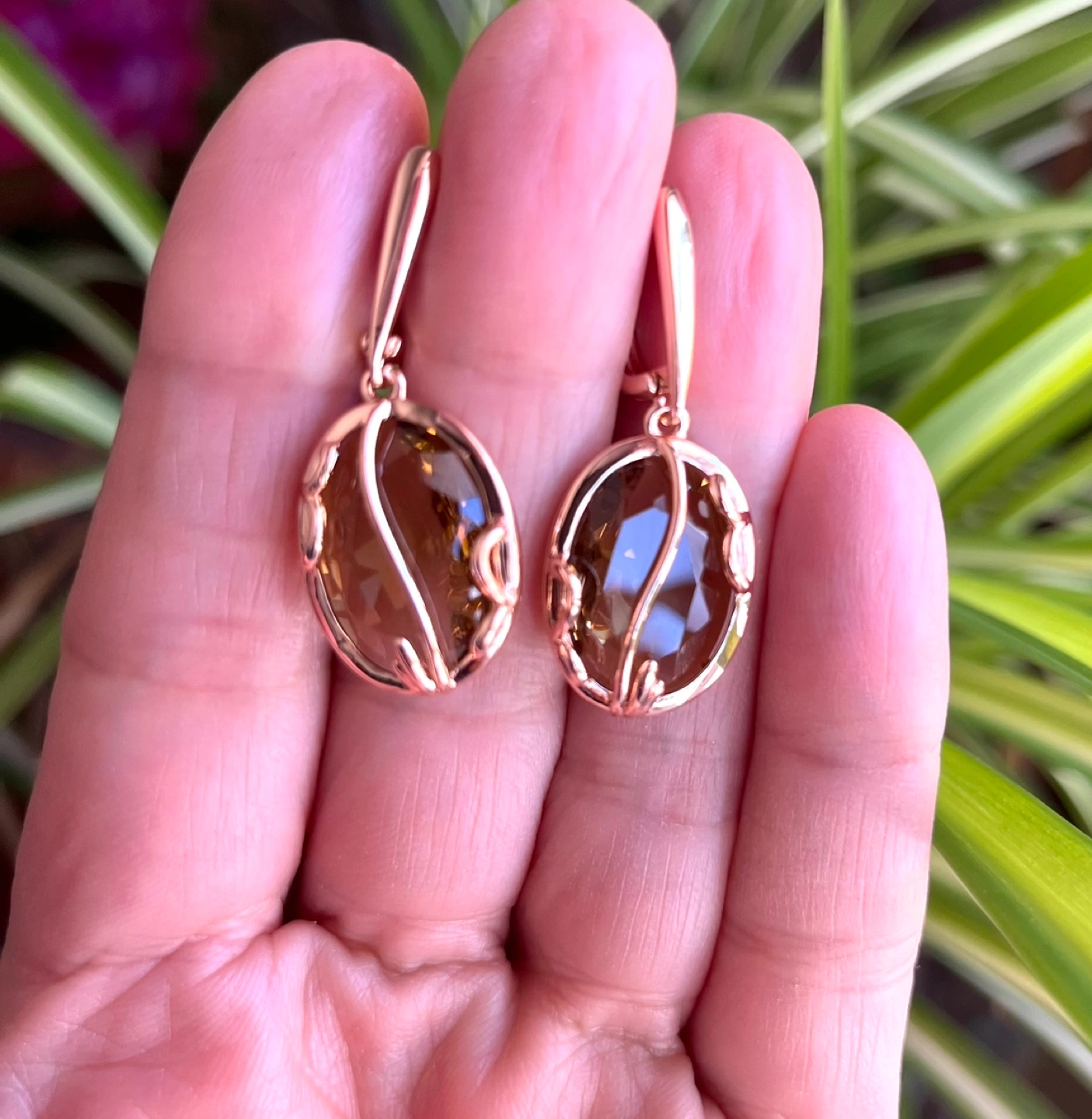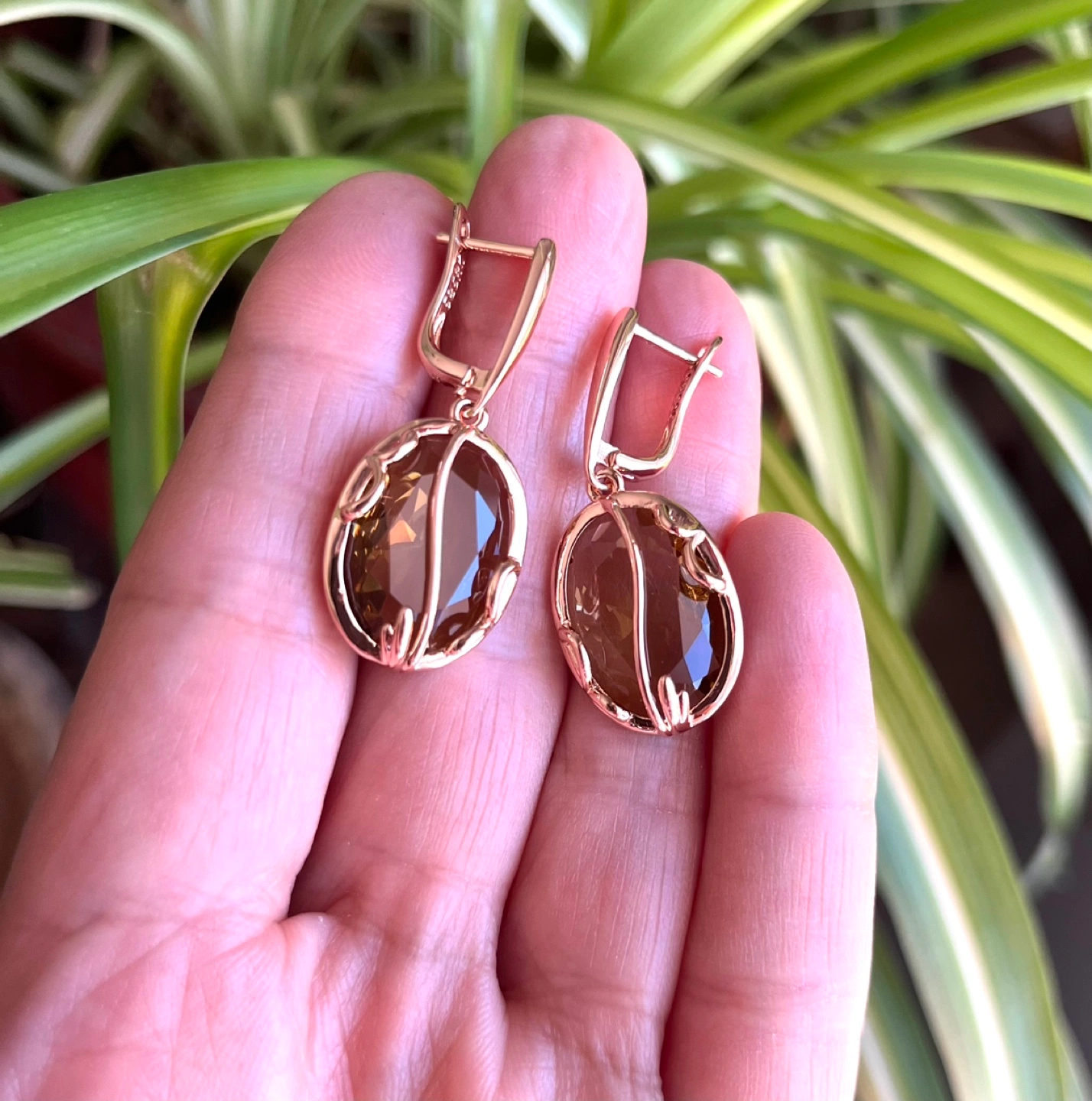 Beautiful brown drop earrings. Rose gold setting. Oval shaped stones. Elegant design. Perfect for everyday wear or a special occasion.