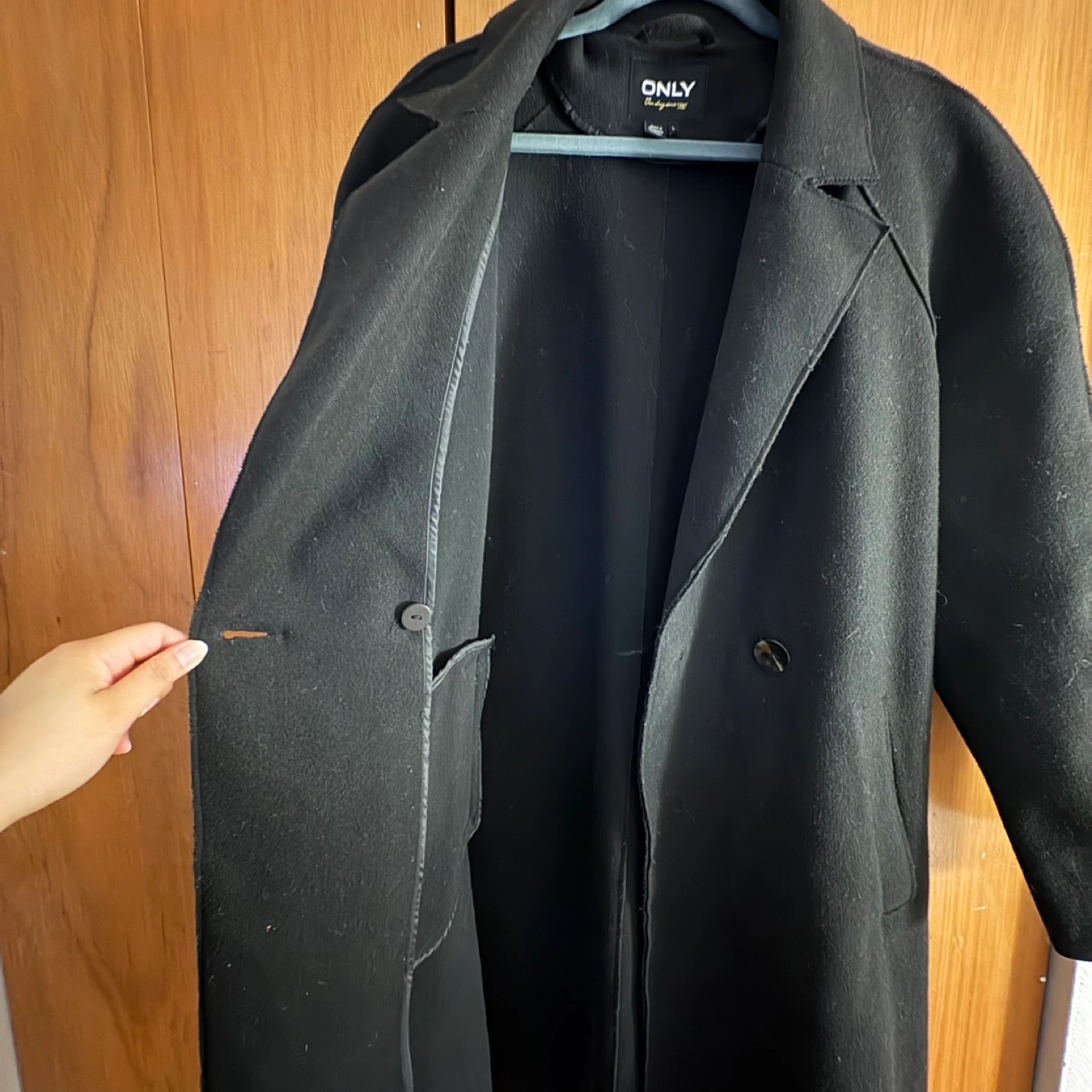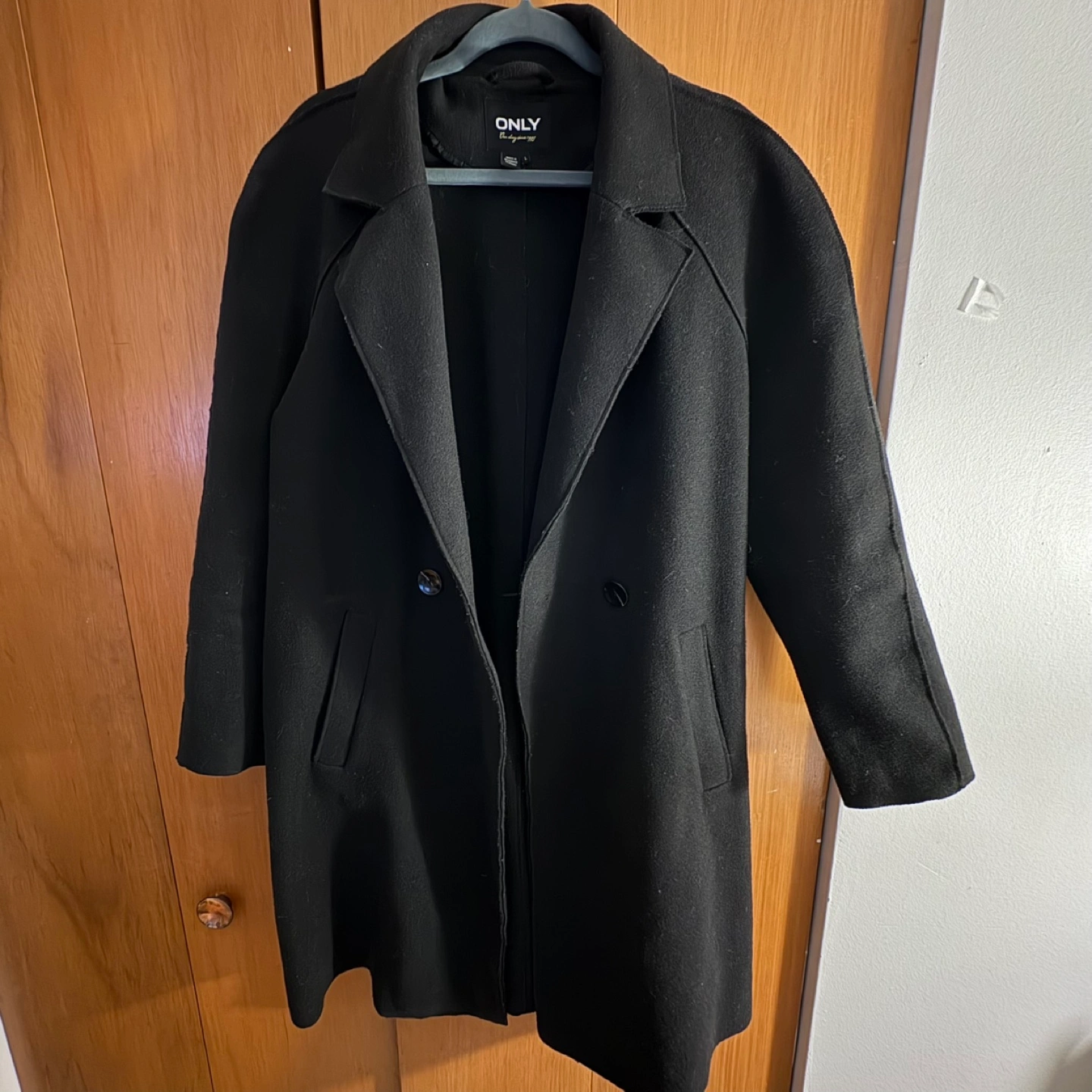 Women's black coat, size large. Double-breasted with two pockets. Selling as i’ve upgraded my winter coat recently. Used gently, in good condition, and still has a lot of life left. From a non-smoking and no pet home. Pick up at fairview or downtown: Robson/Seymour/Granville (on some days) Price negotiable if buying multiple items from my listings :)