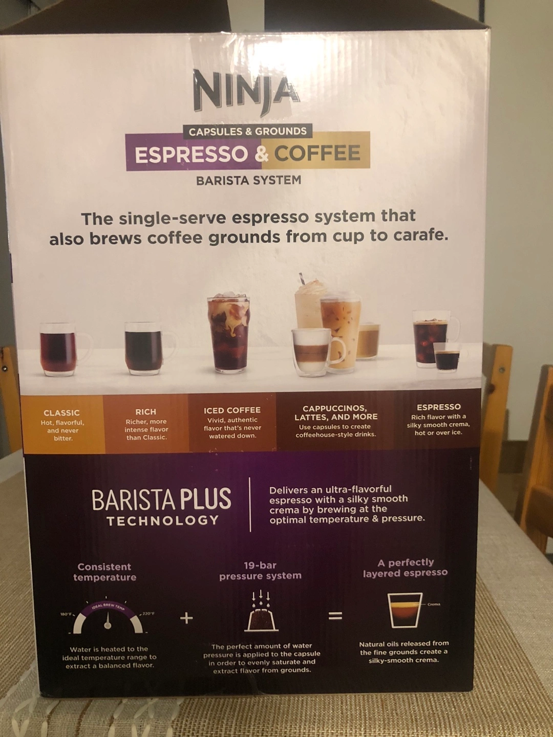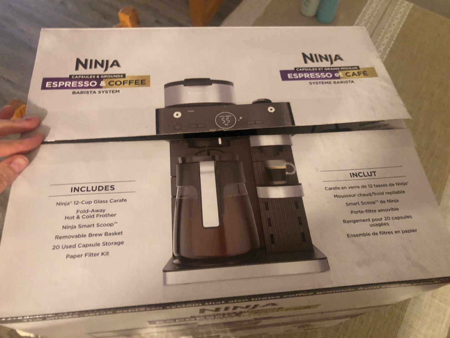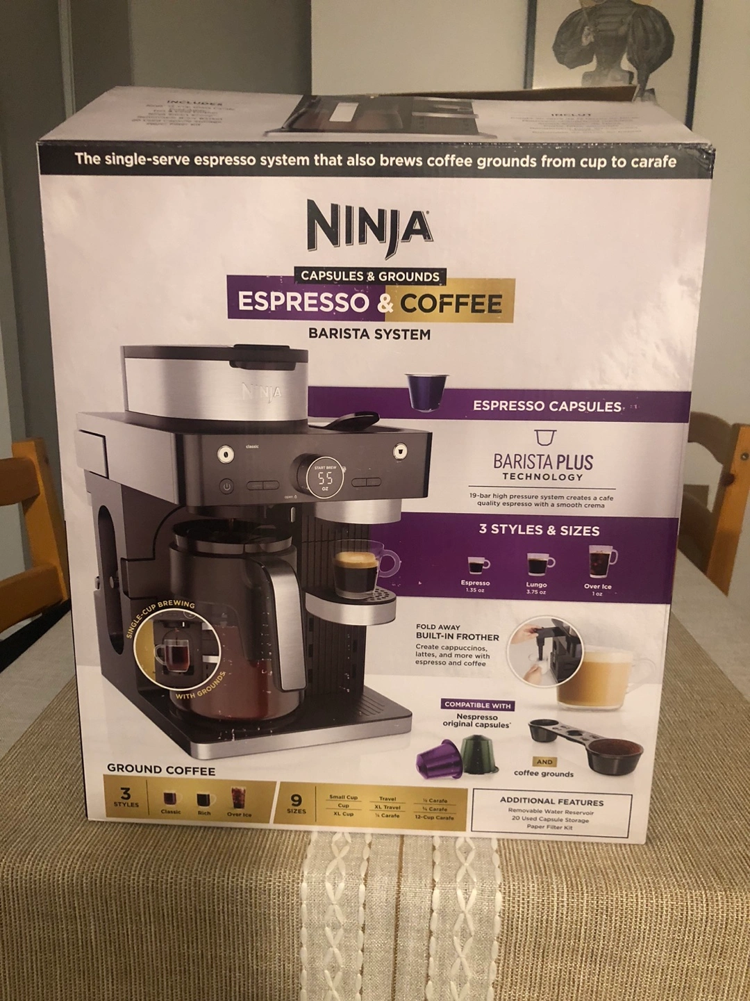 New Ninja Espresso and Coffee Barista System. Brews espresso and coffee grounds. Includes 12-cup carafe, frother, and more. Makes various coffee styles. Single-serve espresso system. Used a couple times - brand new and comes with everything in the box