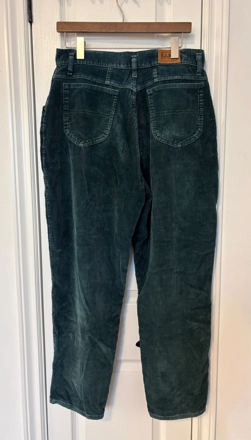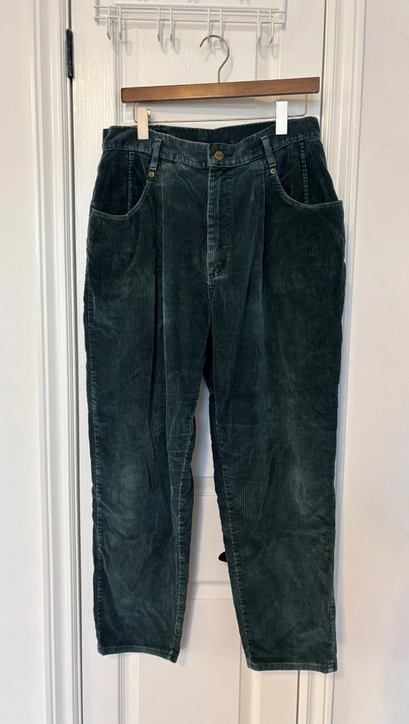 Green corduroy pants. Pleated, vintage style. They are in great condition, barely worn after buying