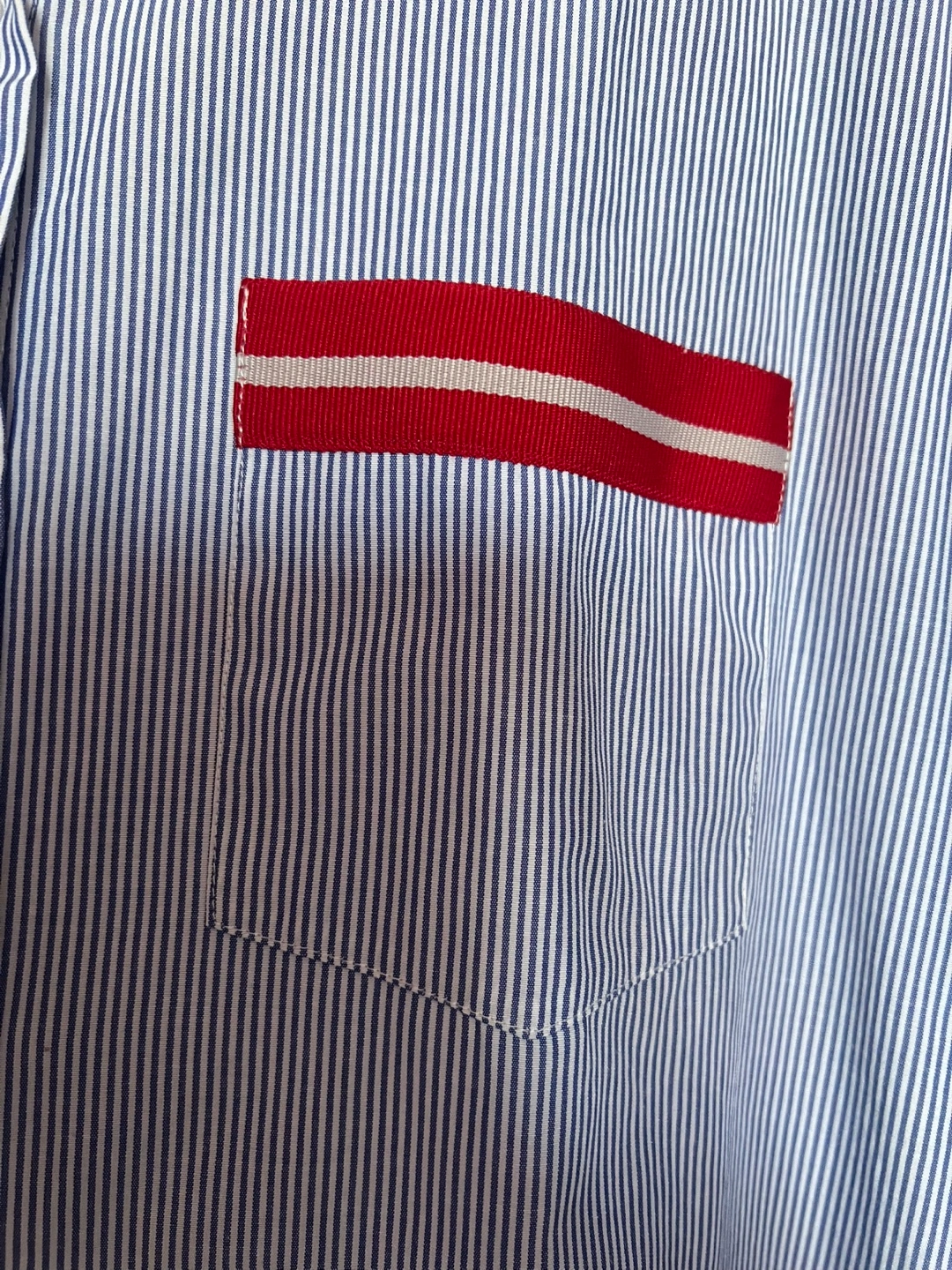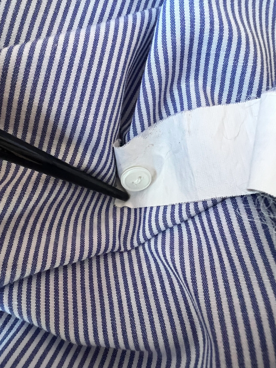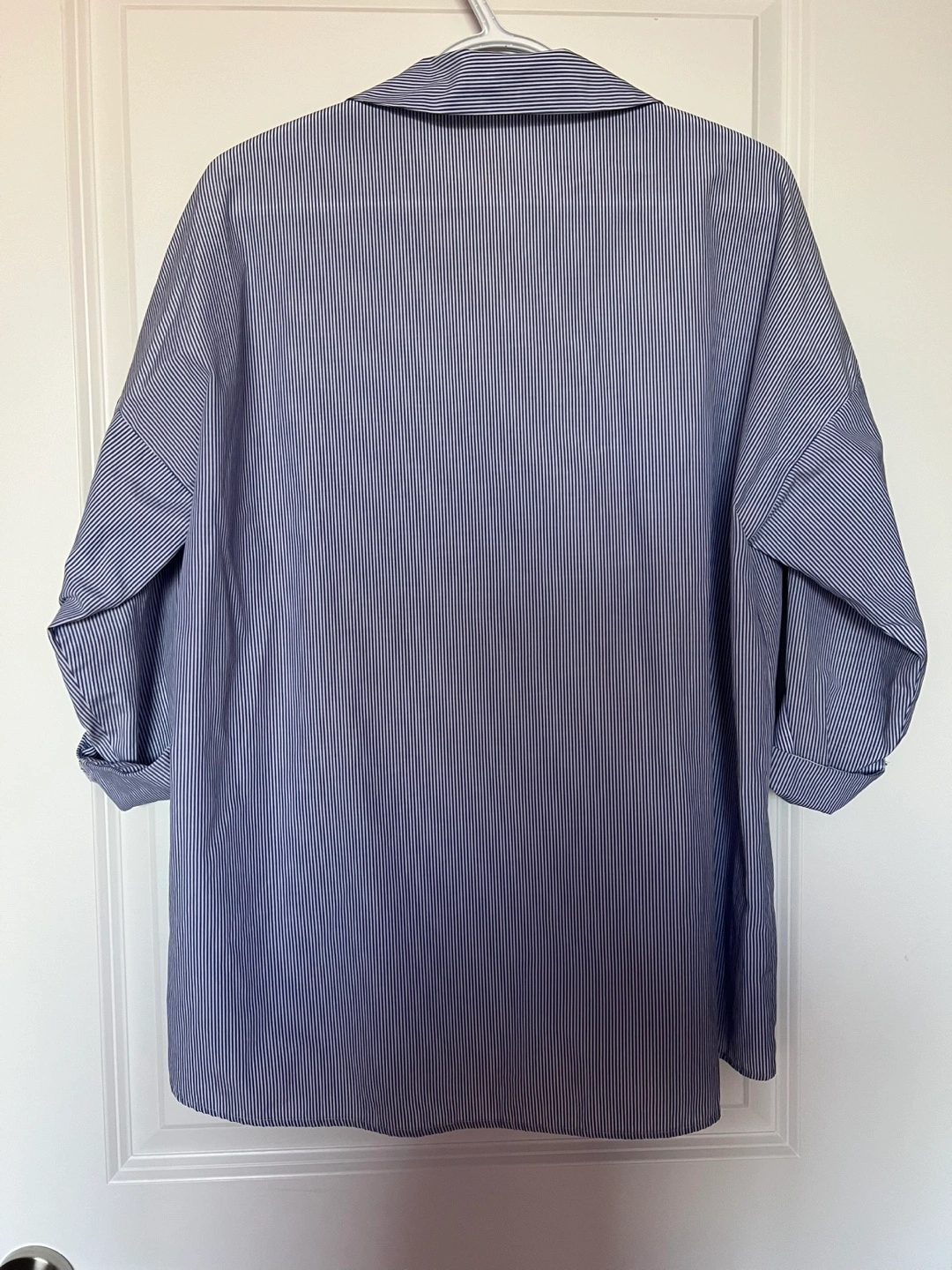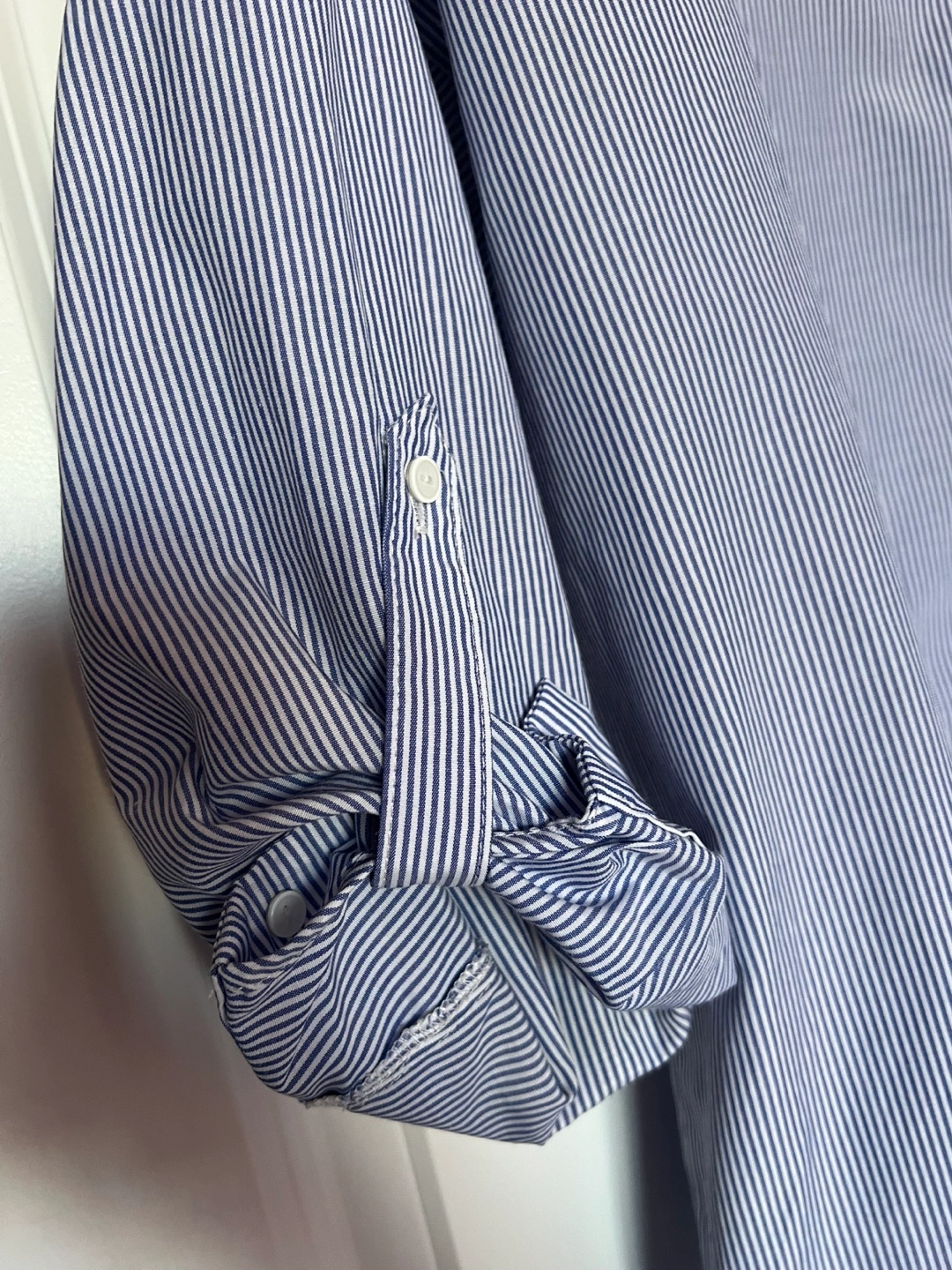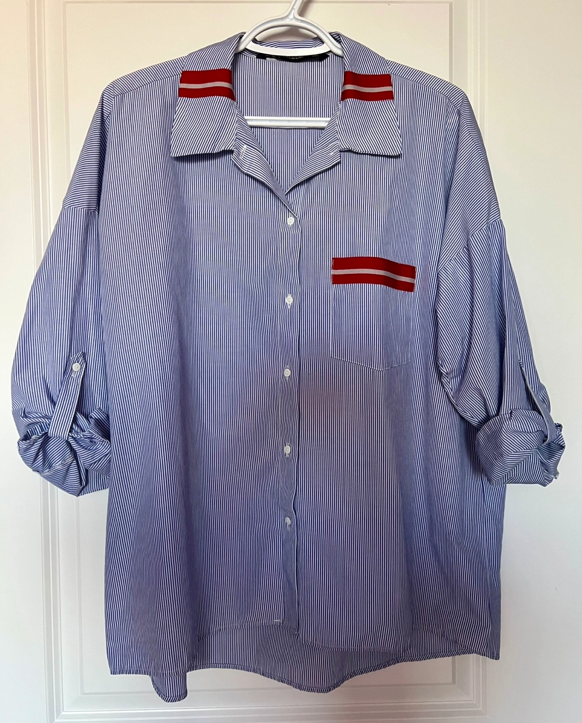 ‼️I delete my ad immediately after my item is sold, so if you see this ad, it’s available! You can go ahead with your questions ! ❌ I won’t reply any availability questions Women's button-down shirt. Blue and white vertical stripes. Features a unique red and white ribbon detail on the collar and pocket. Rolled-up sleeves. Size Medium. ‼️Pick up Yonge & Finch area ONLY!!!! ( please don’t message me if you can’t come for pick up! No delivery or any meet ups! Will provide pick up address after pick up time scheduled ❌ no trade ❌ Please check out my other listing ‼️I cross post on other platforms as well, so first come first get , unless deposit received
