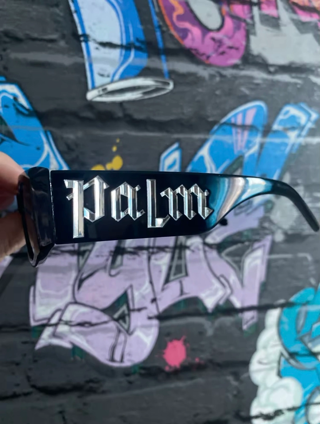 Black sunglasses. Silver Palm Angels logo. Unique design. Excellent condition.