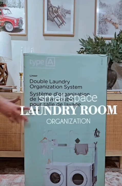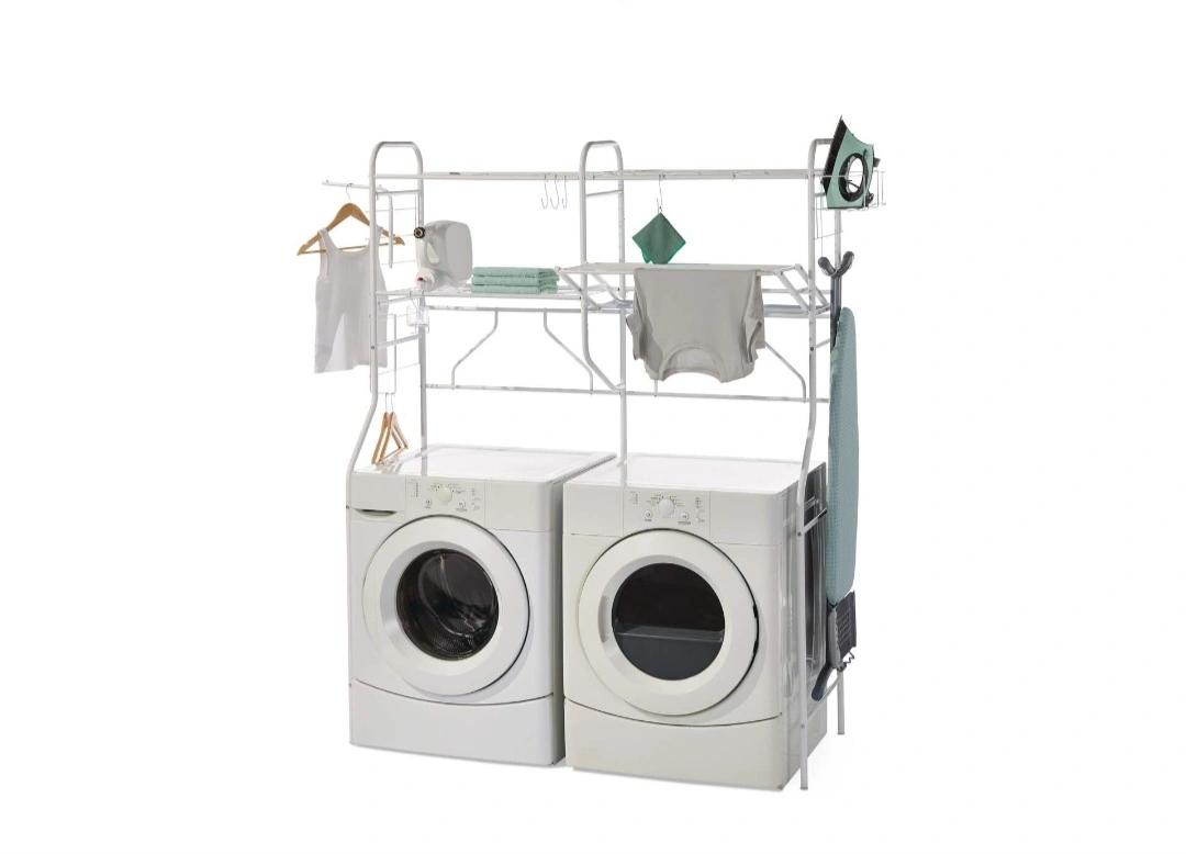 Brand new in box. Laundry organization system. Space saving design. Great for small laundry rooms. Features shelves, rods, and ironing board holder. Suitable for standard size washers and dryers.