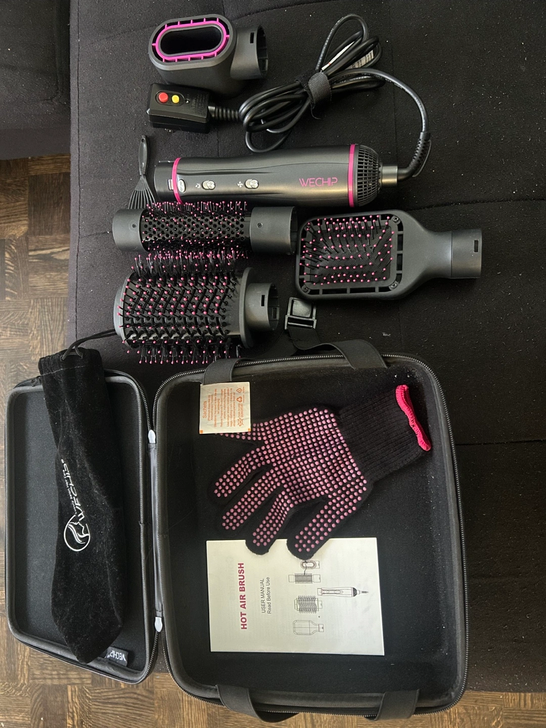 Complete hot air brush luxury hair care styling kit. Includes dryer, various sized brushes, heat resistant glove, and carrying case. Excellent for styling hair. Four styling accessories that can make the hair curl, smooth, dry, straighten and wavy. 360-degree rotating cord allows for complete freedom of movement without tangling or getting damaged. Gently used. Good and working condition. We are moving to our home country that’s why I need to sell it. Few months before buying it. Perfect to treat yourself or for a valentine’s gift 🎁