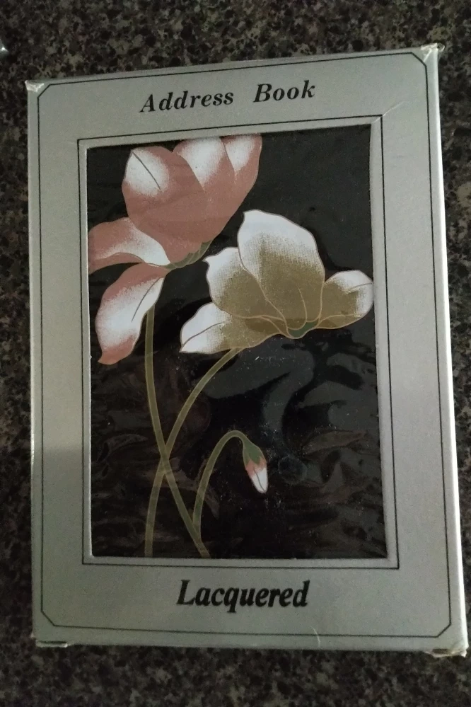 Beautiful floral design. Black lacquer finish. Alphabetical index. Unused pages. Great condition. brand new and in original packaging.d pick up Weston rd@401 may accommodate at various locations within distance only.