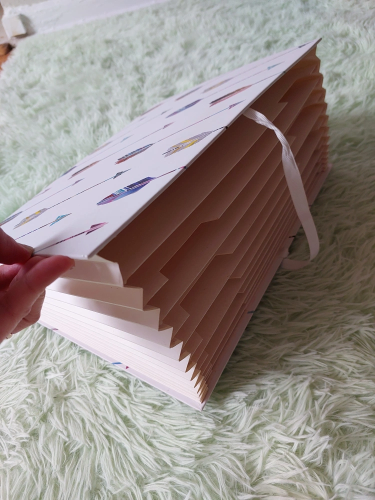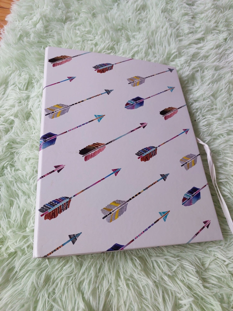 Expanding file folder, colourful arrow design. Multiple pockets for organization. Great for storing papers, documents, and more.