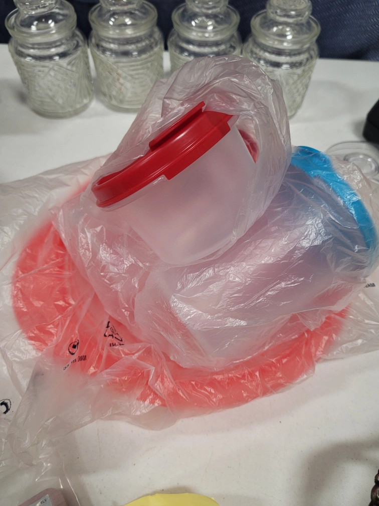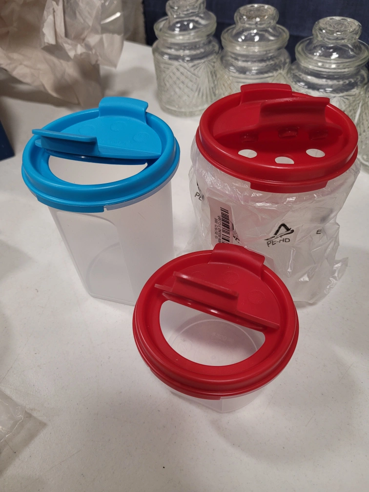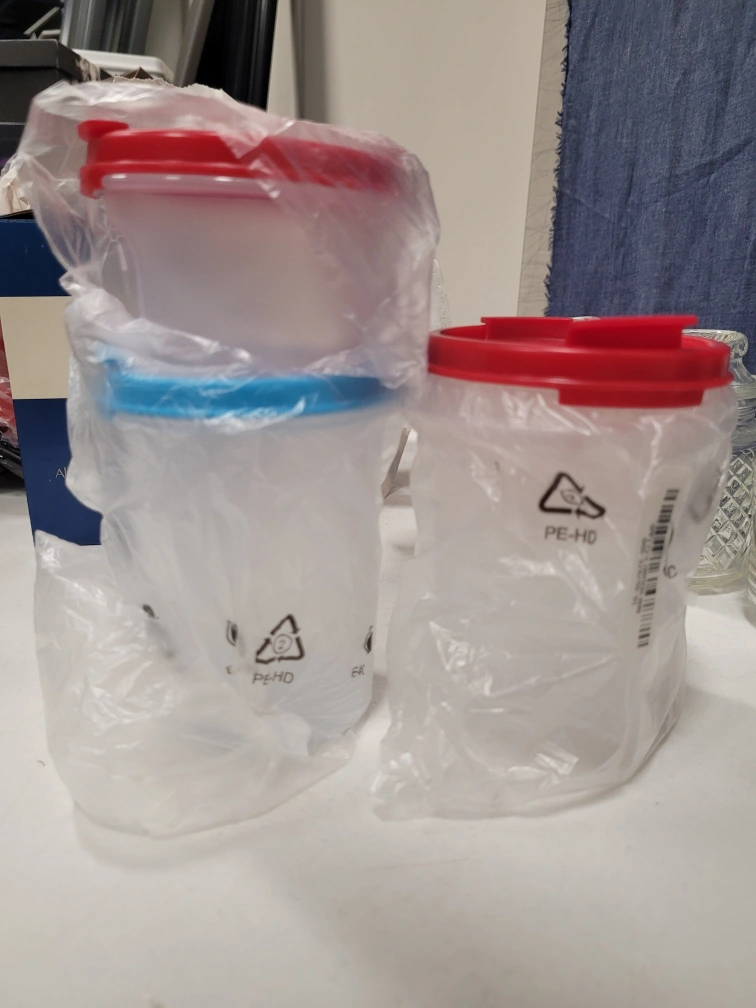 3 containers with 3 lids plus bonus item. Set of three stackable plastic containers. Clear containers with red and blue lids. plus a pop up strainer. must take all Perfect for organizing pantry staples or leftovers. New, with some original packaging. no etransfer. no delivery pickup by appointment at 391 attwell drive during monday to friday 830 to 430pm by appointment. its in storage at my office and i will meet you there.