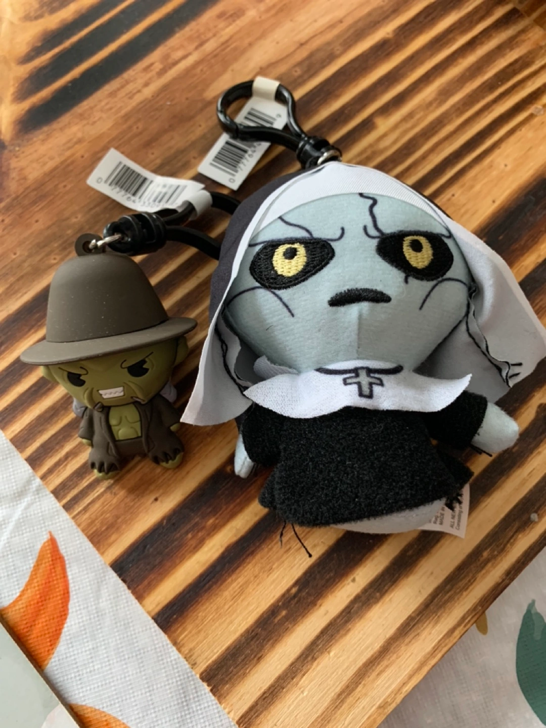 Two cute horror-themed plush keychains. One is a nun and the other is jeepers creepers Collectible and great for bags or keys. porch pickup near erin mills town center