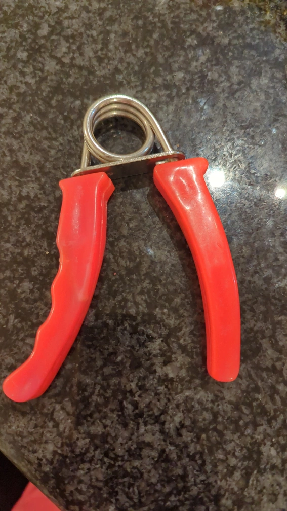 Red plastic handles. Metal spring. Great for hand strengthening. pick-up Wellington and Blue Jays intersection