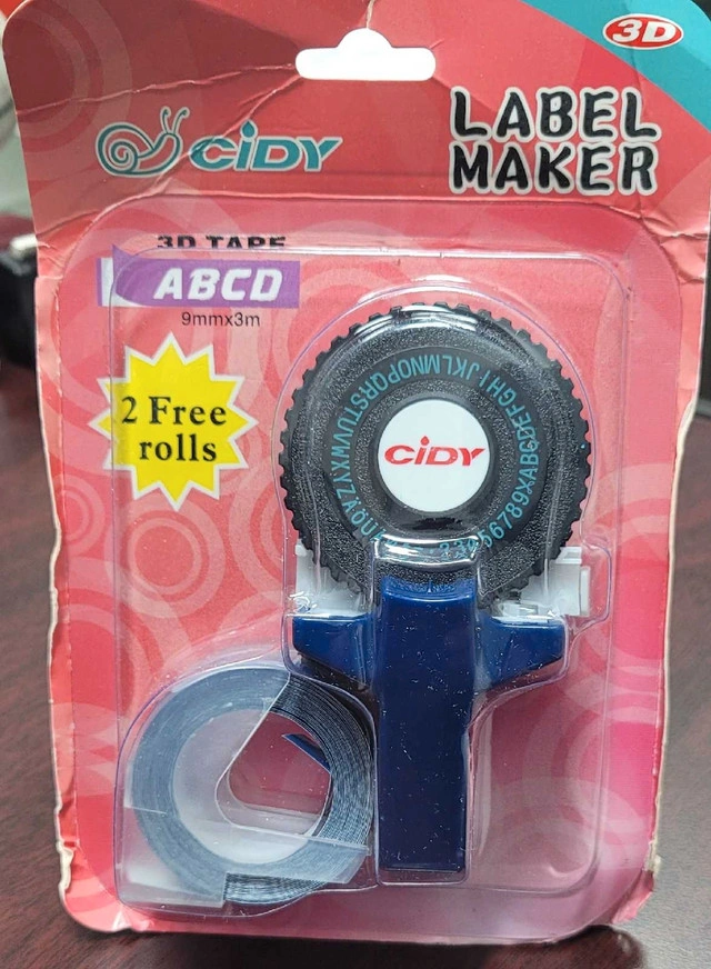 Mini portable manual label maker DIY 3D embossing label writer printer typewriter with plastic PVC 9mm×3mm. Label tapes lettering machine 2 free rolls. Retail price $20 plus tax. Pick up in Brampton near Sheridan College Davis campus