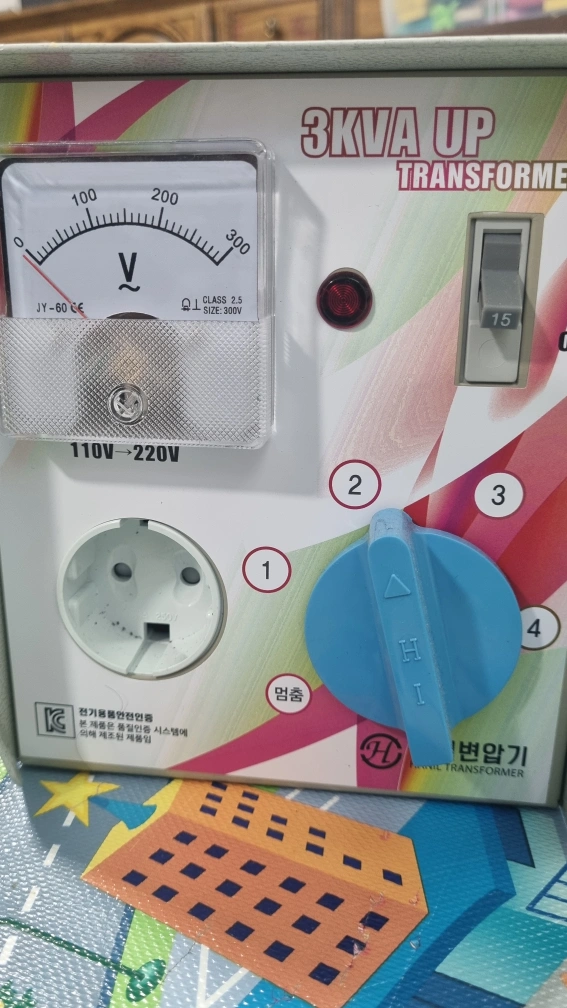 Selling a 3KVA UP Transformer, model HI-3KVA. It's in good working condition and comes with the original box. This transformer supports both 110V and 220V. Perfect for various electronic devices!. I bought it in Korea. Almost never used.