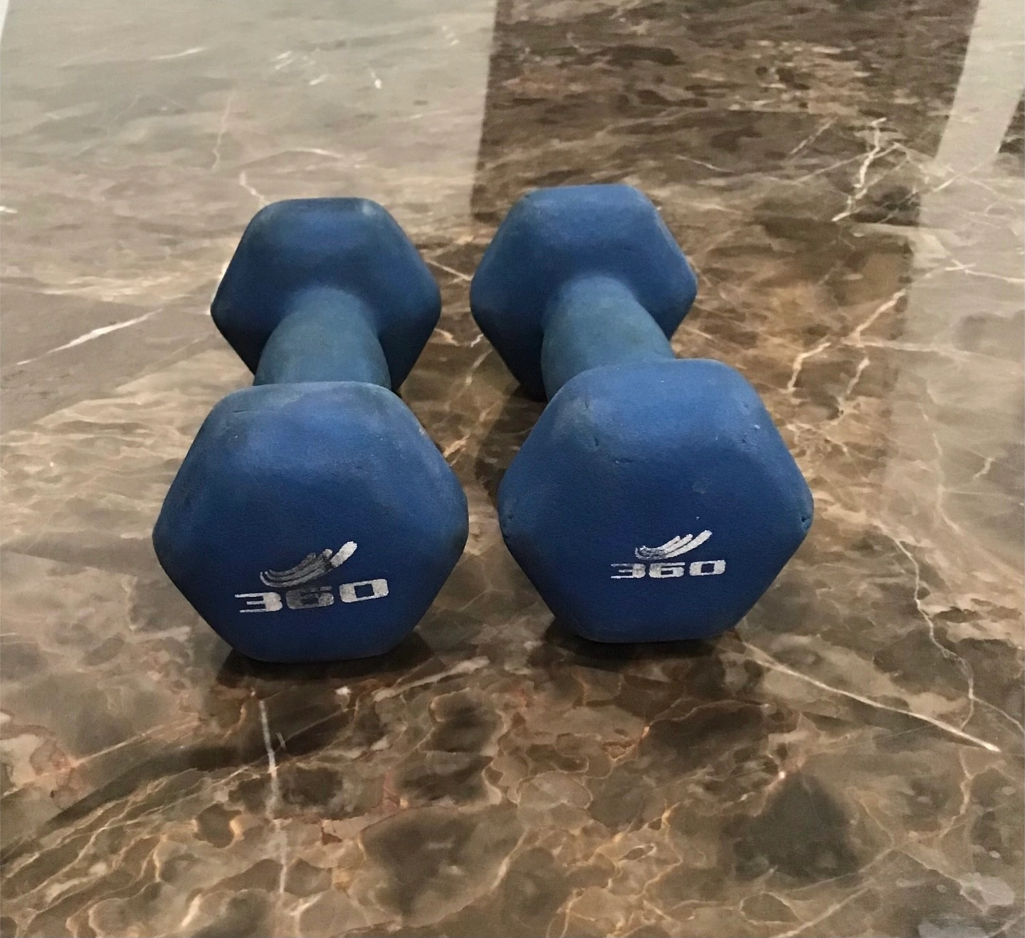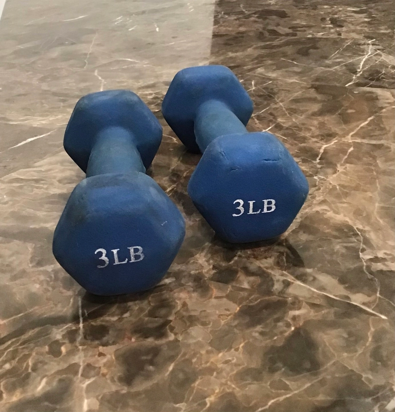 Selling a set of two 3LB dumbbells. They are in blue and have the 360 logo on them. Great for home workouts!