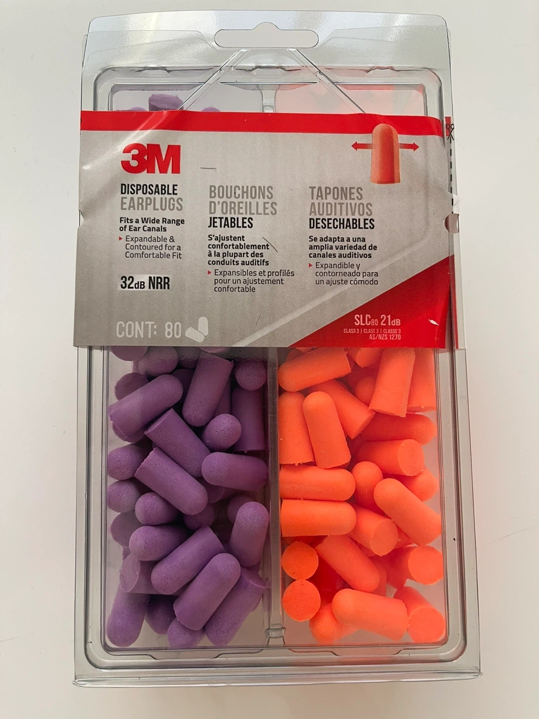 Selling a pack of 3M disposable earplugs. The pack contains 80 earplugs minus a few pairs (not sure exactly how many but quite certain I’ve only used five pairs at most). They are designed to fit a wide range of ear canals and are expandable and contoured for a comfortable fit. They also have a 32dB NRR.