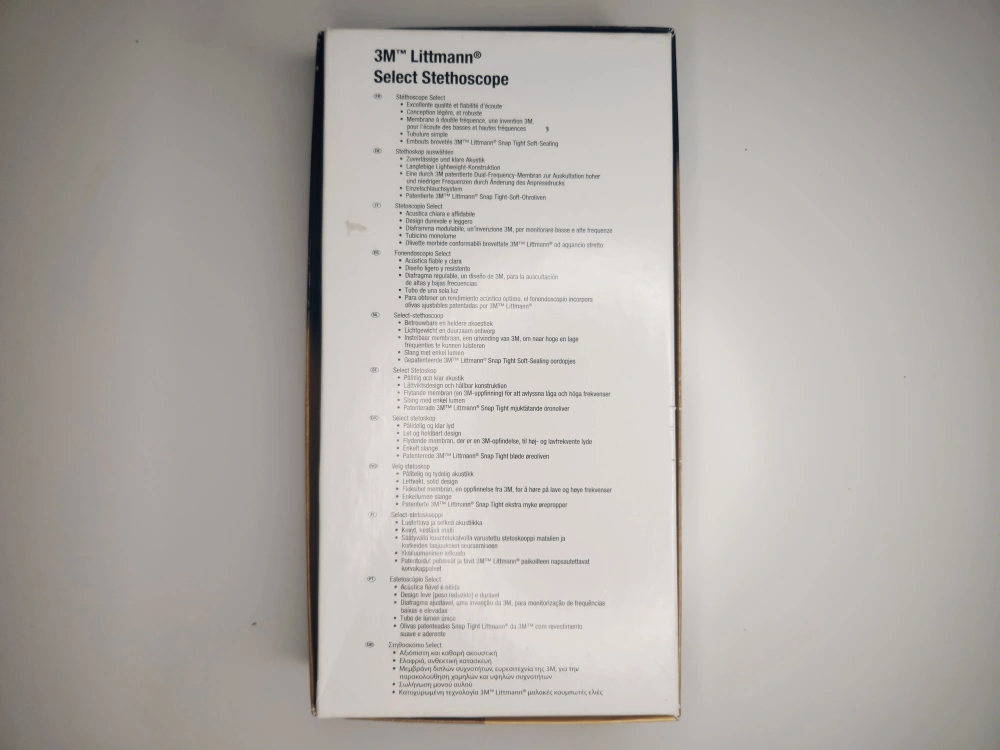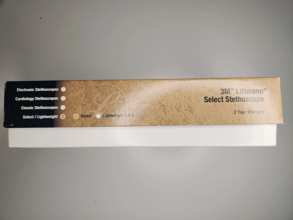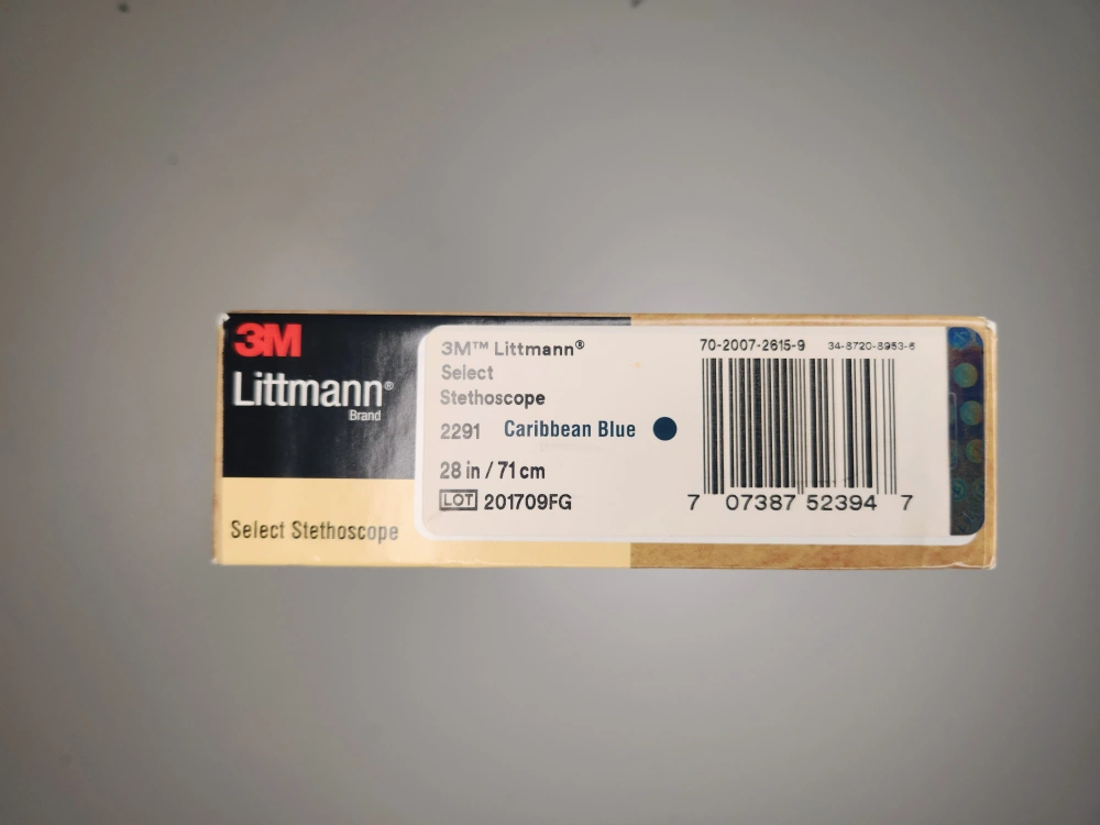 Selling a 3M Littmann Select Stethoscope in Caribbean Blue! It's in great condition and comes with the original box. This stethoscope is known for its reliable and clear acoustics, lightweight design, and tunable diaphragm. The box indicates it's 28 inches/71 cm long. Perfect for any medical professional or student!