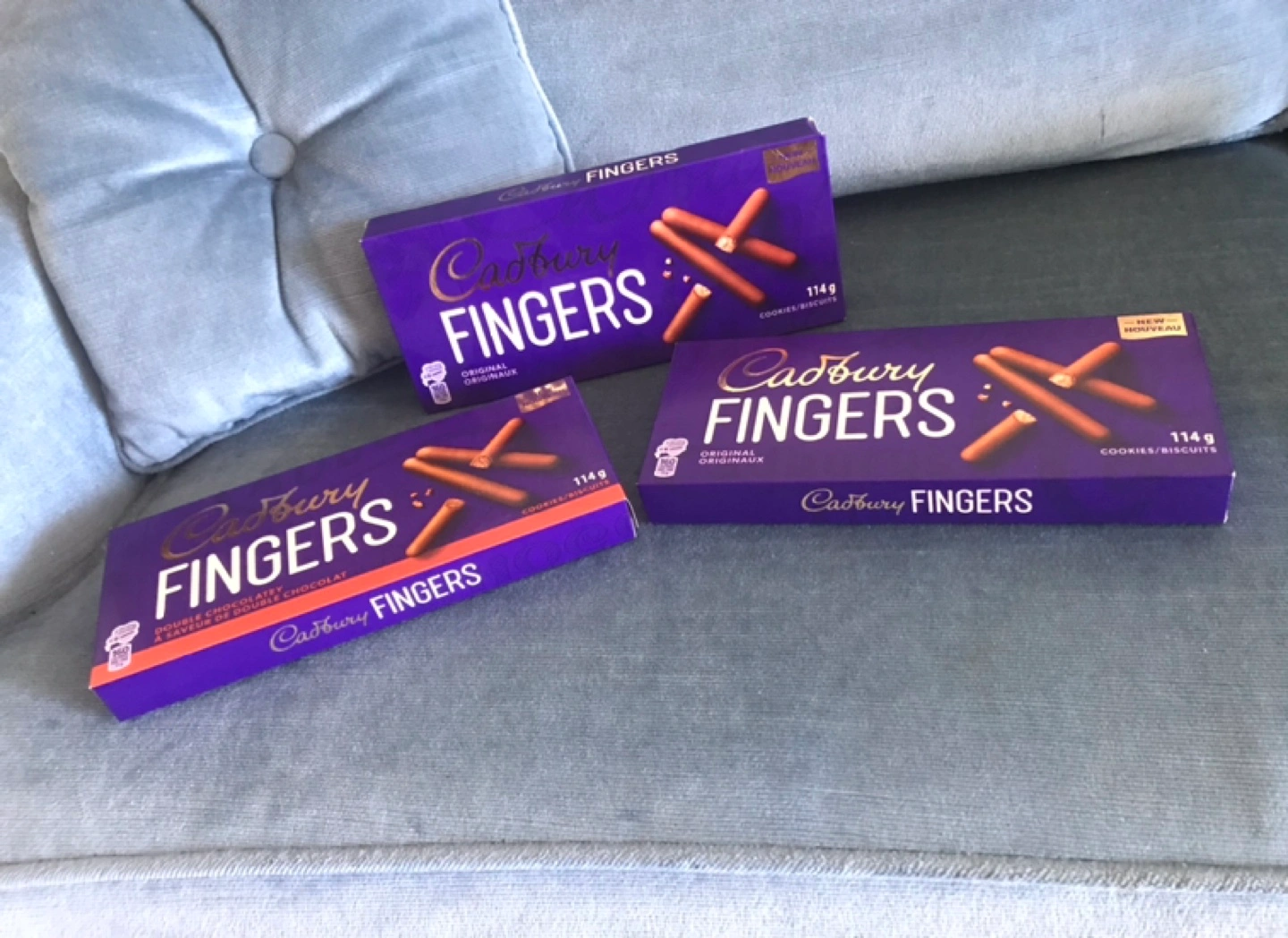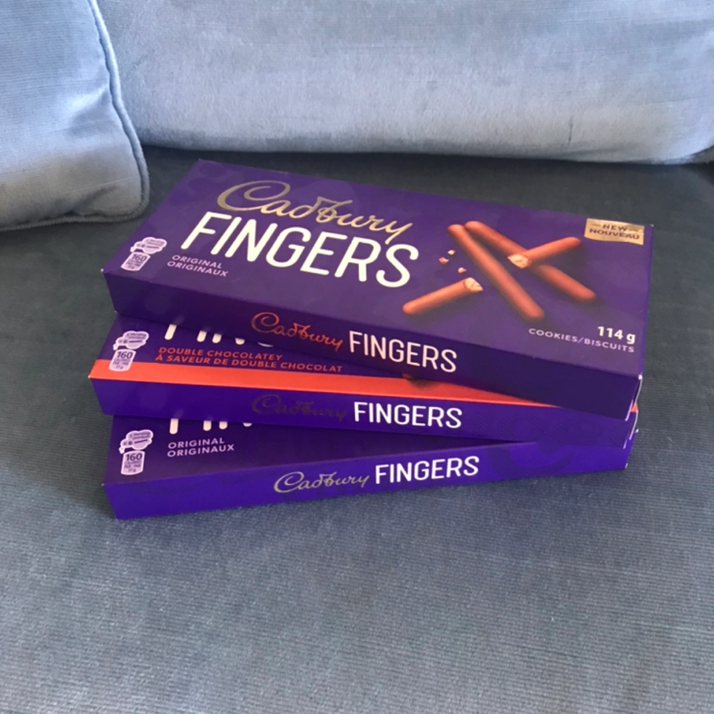 3 Packages of Delicious & Decadent Cadbury Chocolate Fingers cookies. 1 x Double Chocolate (BB Oct 25, 2025). 2 x Original Chocolate (BB Nov 8, 2025). 114g each.