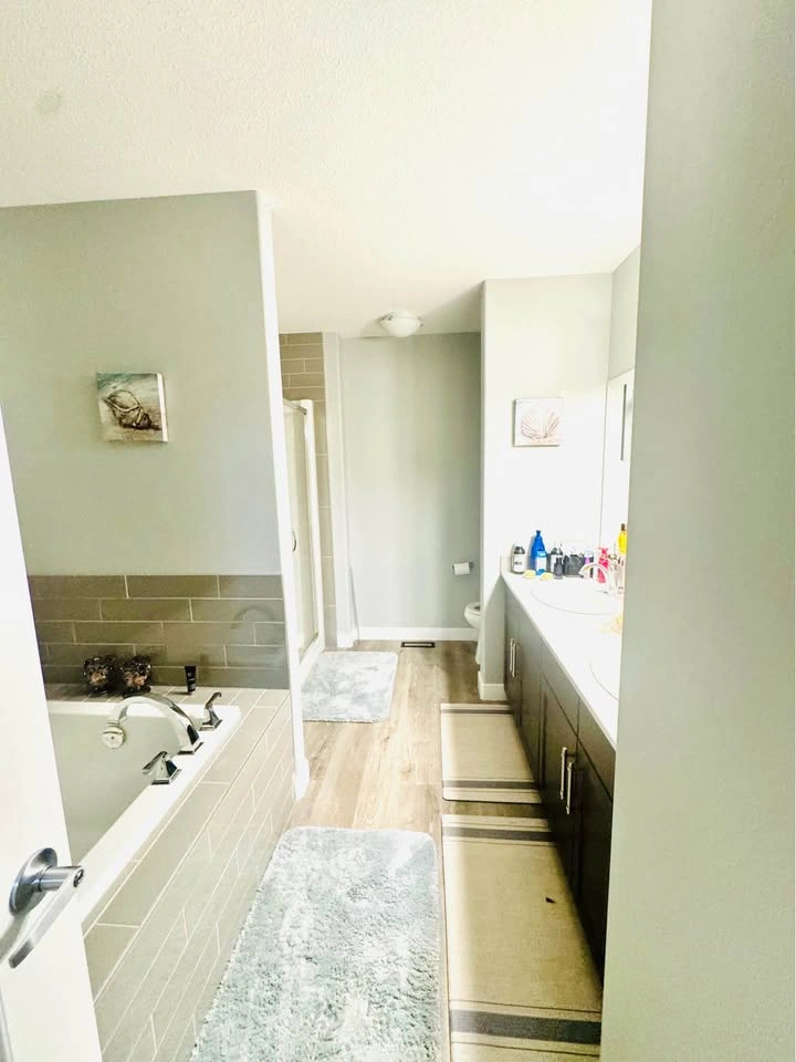 Meticulously kept and ready for you to enjoy. This home has 4 bedrooms, 3 full bathrooms plus 1 bonus room with a door that can easily be used as a bedroom/study/gym room. This house is located in the desirable neighbourhood of Secord in west Edmonton, with easy access to the Henday, Whitemud and Stony Plain. Upon entering this home, you will be captivated by the open concept design, boasting a large living room space with a well structured kitchen and pantry. The main floor includes a bedroom with a full bathroom. On the upper floor, this home boasts a large master bedroom with a walk-in closet and ensuite for you and yours to enjoy. There are 2 other nicely sized bedrooms and a bonus room with a door as well a large laundry room on the upper level. Relax in your large double deck with a gazebo. This home is conveniently located close to David Thomas King school and a catholic school around the corner, not too far to bus stations and West Edmonton Mall. Pets allowed with approval for a fee. Utilities not included. Legal basement suite not included (to be rented out separately). Applicants must be willing to have a credit and reference check done. Long term tenants preferred: Initial lease will be for 6 months and then extend yearly after.