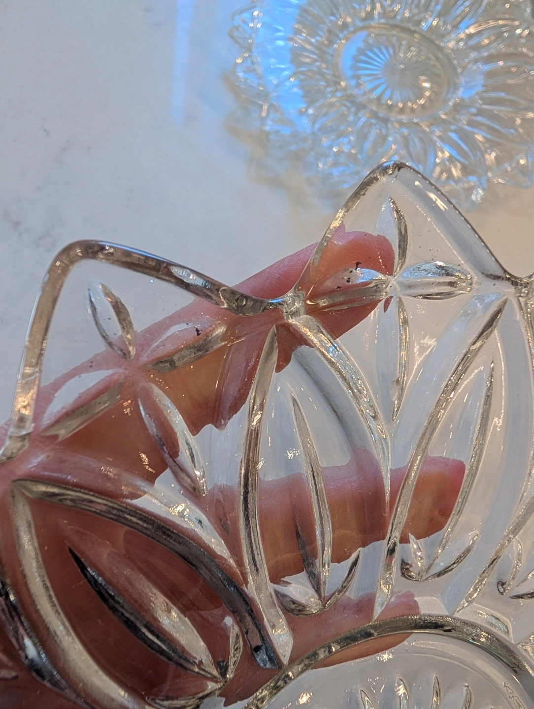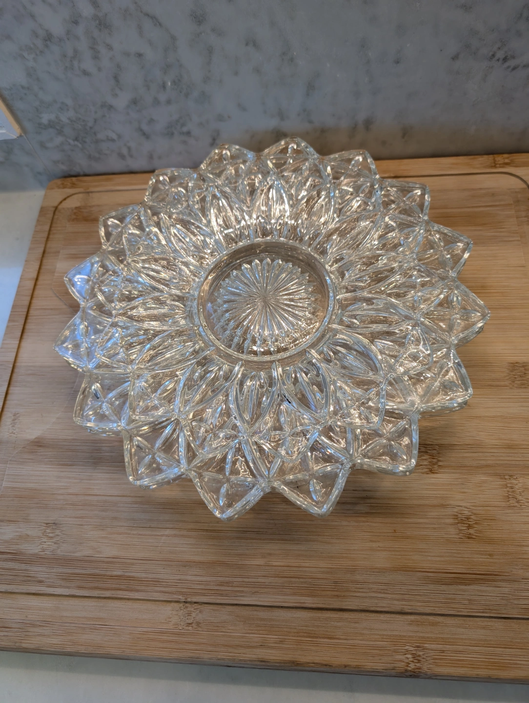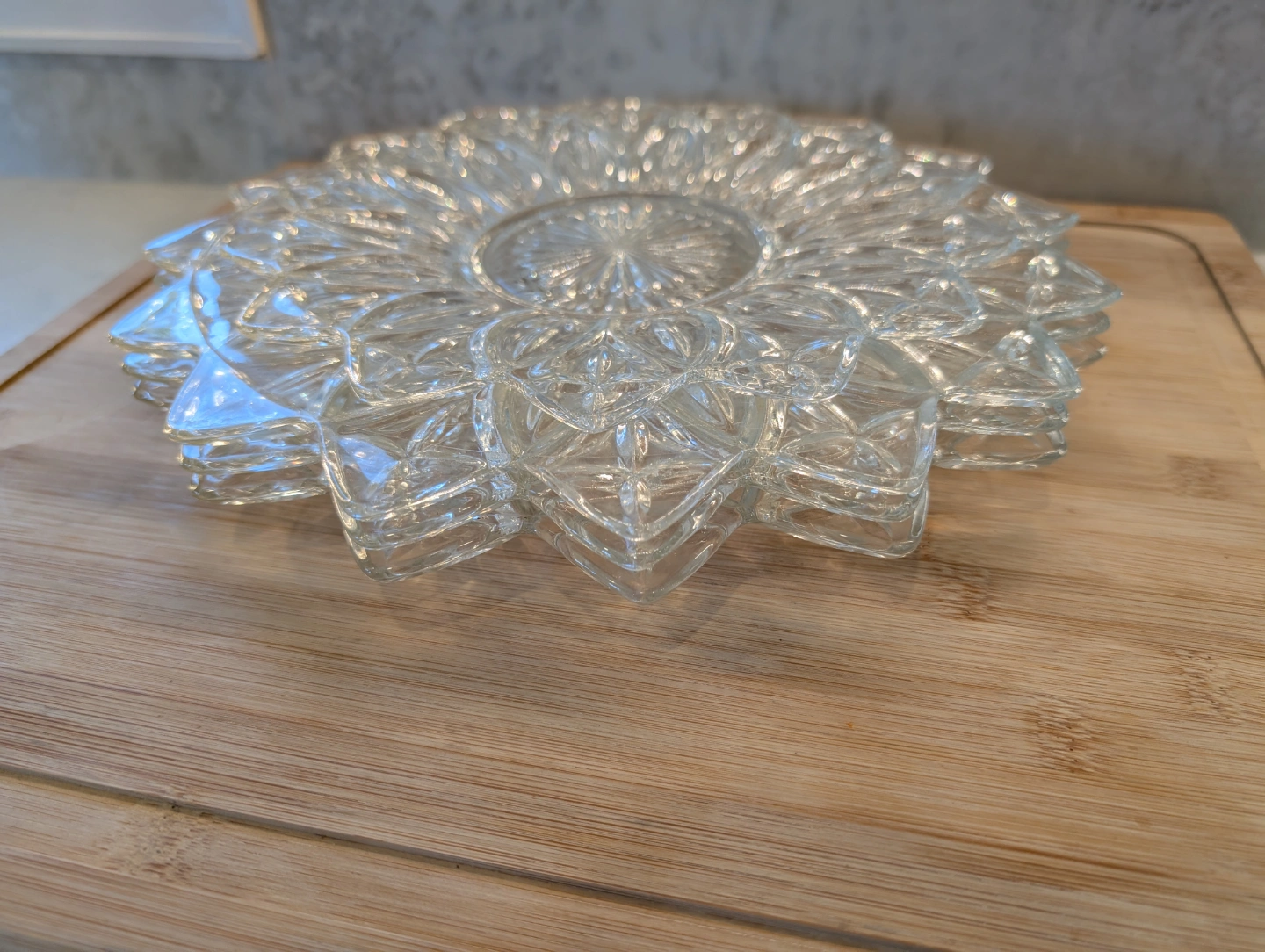 3 plates are 11.5 inches in diameter and one is 9 inches Please note: these dishes are vintage and have wear, inlcuding the black marks as seen in the photo. They may need extra cleaning