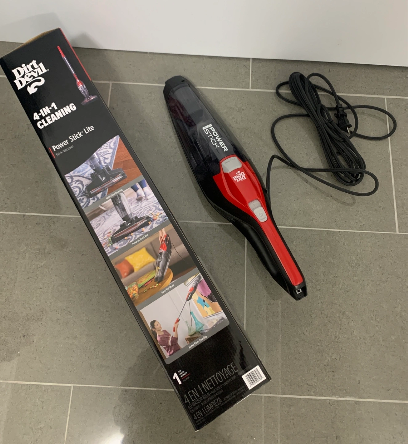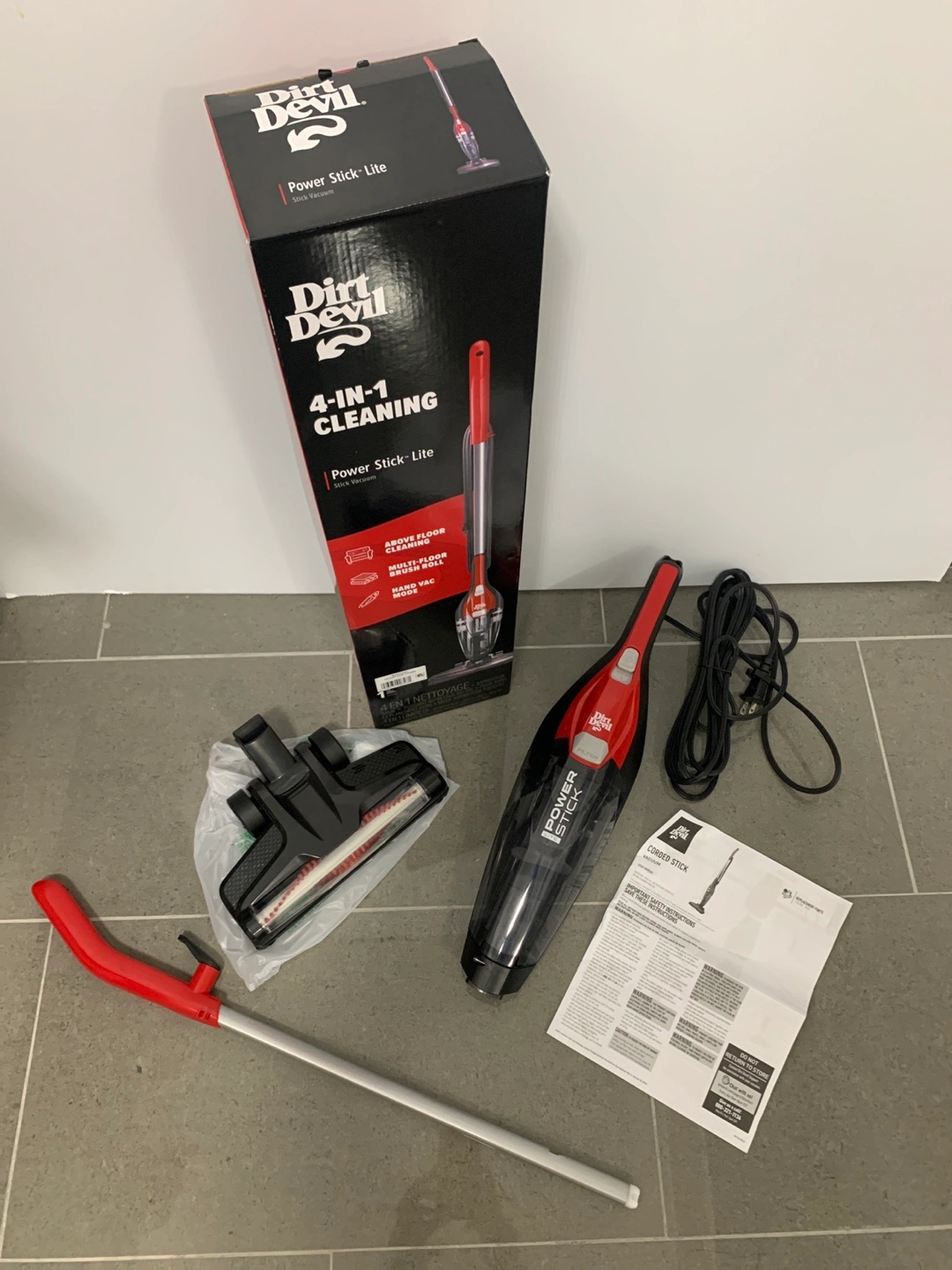 New in box. 4-in-1 stick vacuum. Includes attachments, manual, and power cord.