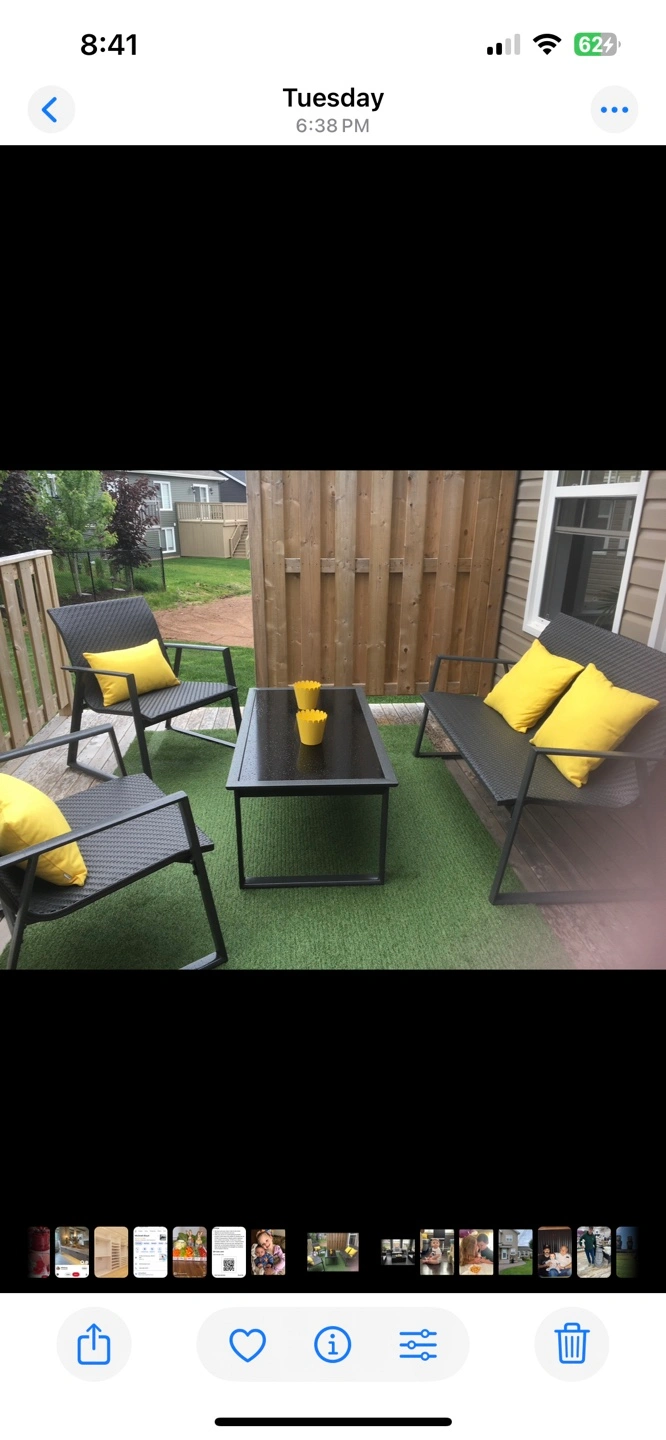 HomeBuy and sell4- Piece Patio Conversation Set with Coffee TableNicoleDieppe00 reviewsSold4- Piece Patio Conversation Set with Coffee TableFurniture · $100Wicker patio furniture set. Includes two armchairs table and a loveseat. Black frame. Yellow cushions. Modern design. Great for small spaces.ConditionLike newWhere to meetDieppe1 chat·0 favourites·67 viewsGet the Karrot app