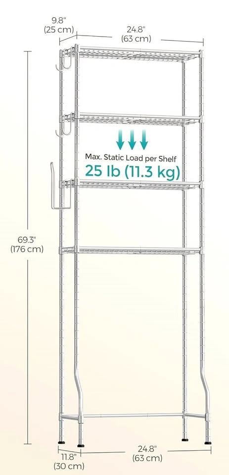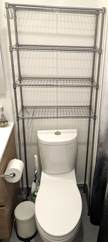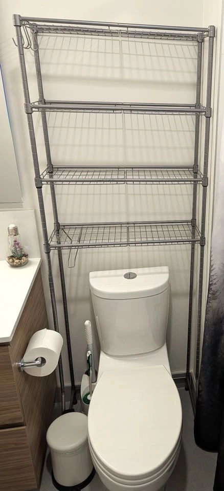 Excellent condition, photos taken today. Measurements and specs in photos and in description below. Pet-friendly and smoke-free home. No scratches or damage. Pickup only, from apartment with elevator access to loading area. Located in Vancouver, BC (East Van near Kootenay Loop). Quantity: 01 over the toilet steel storage rack. Selling for $30 (Retail price $60). Cash or e-transfer at pickup. Preference for prompt pickup. Product details from website: https://a.co/d/hfhk1Yb Key Advantages of This Over-the-Toilet Shelf: •4 Adjustable Shelves with Plastic Panels: Optimally organize items of varying sizes with stable, ample space. •Adapts to Various Toilet Types: Adjustable bottom shelf and bars ensure a universal fit. •Included Hooks and Roll Holder: Convenient storage for small items and toilet paper. •Stable and Safe: Enlarged bottom and adjustable feet enhance stability. Anti-tip attachment ensures safe use. •Easy to Assemble: Hassle-free setup with no screws required. Specifications: •Color: Silver Gray •Material: Steel •Product Size: 11.8"D x 24.8"W x 69.3"H (30 x 63 x 176 cm) •Product Weight: 13.2 lb (6 kg) •Max. Static Load Capacity per Tier: 25 lb (11.3 kg)