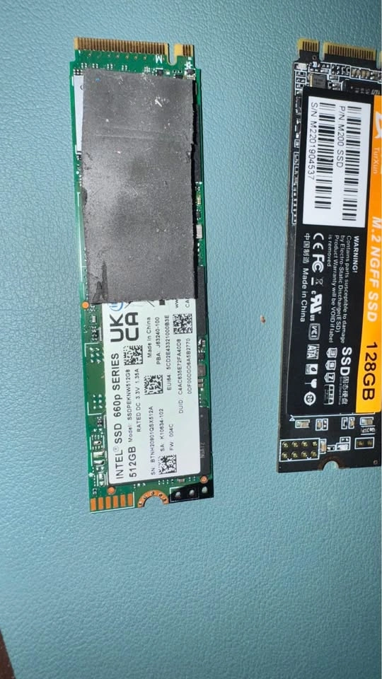 1 x 128GB Intel - $25 1x 512GB Intel - $50 1 x 512 Gab Samsung - $50 1 x 1aTB Samsung - $80