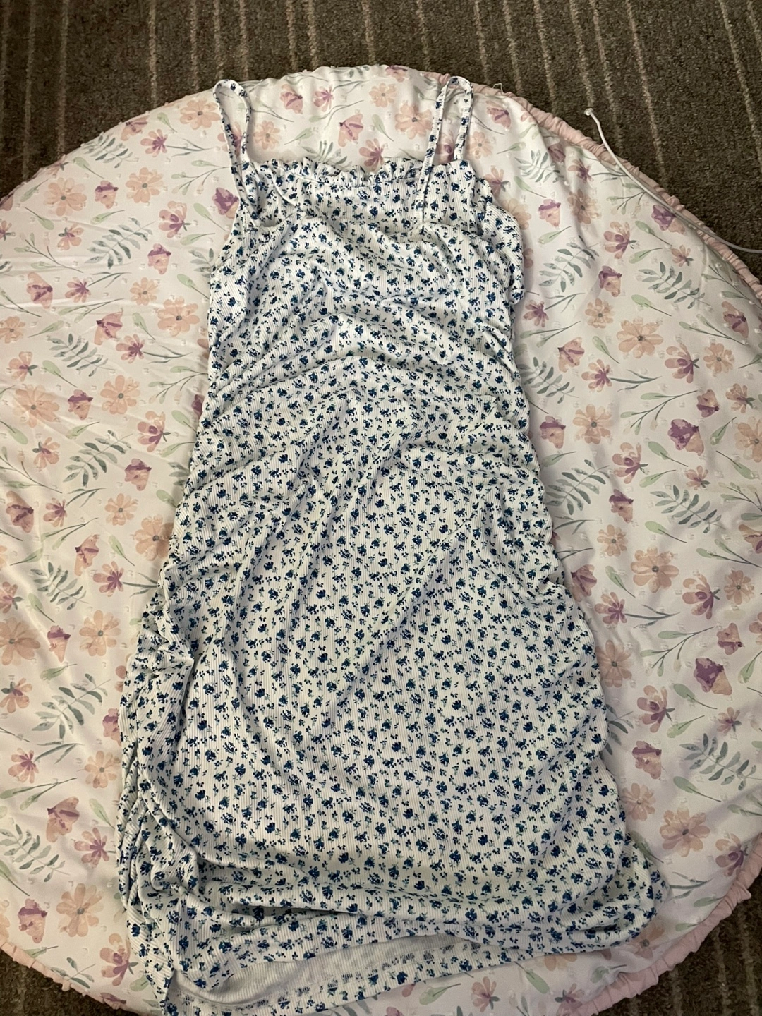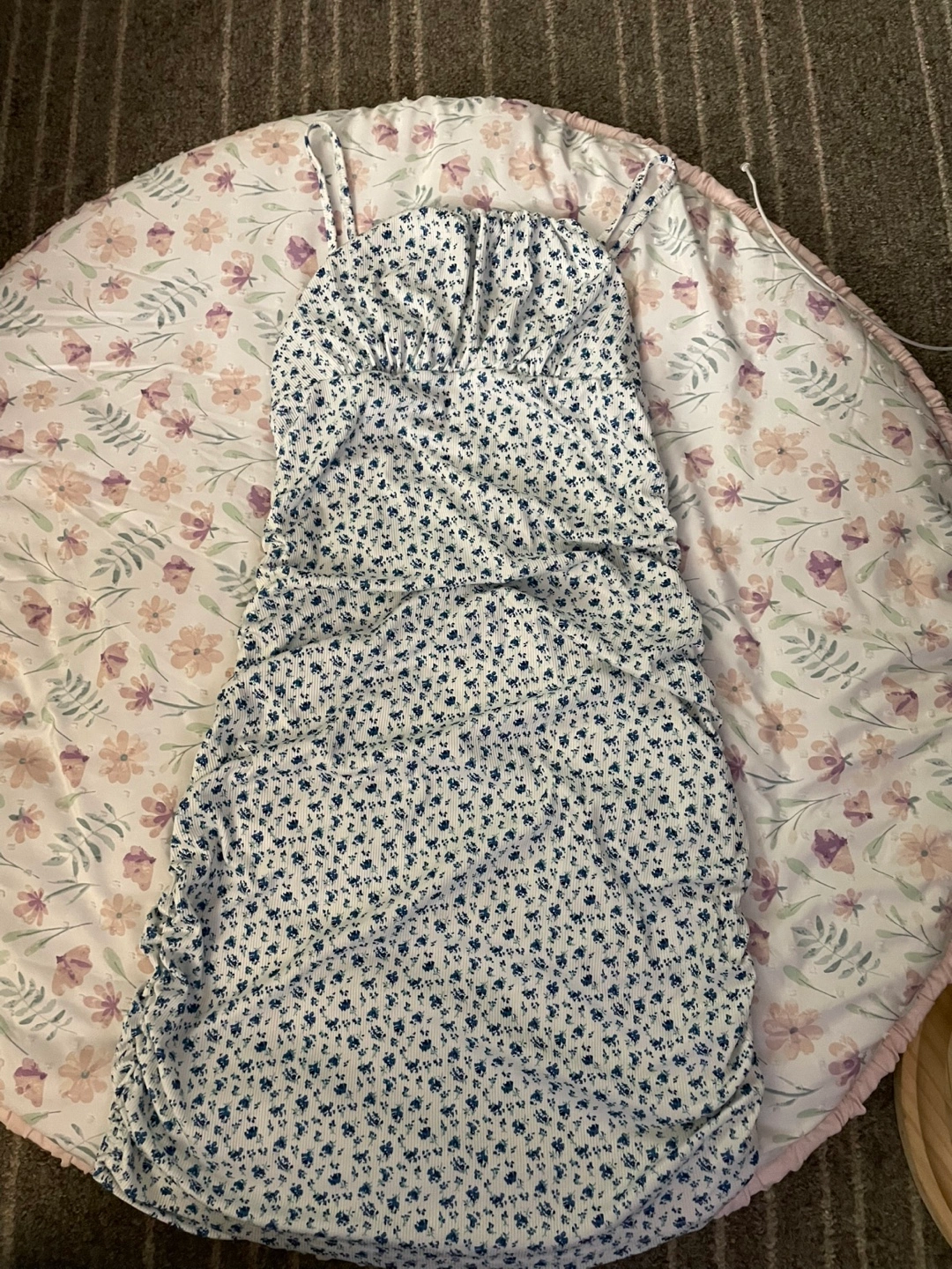 Adorable mini dress. Features a fitted silhouette, spaghetti straps, and a floral print. Perfect for a summer event. Size large but can fit smaller as well Like new condition! No damages, stains or discolouration!
