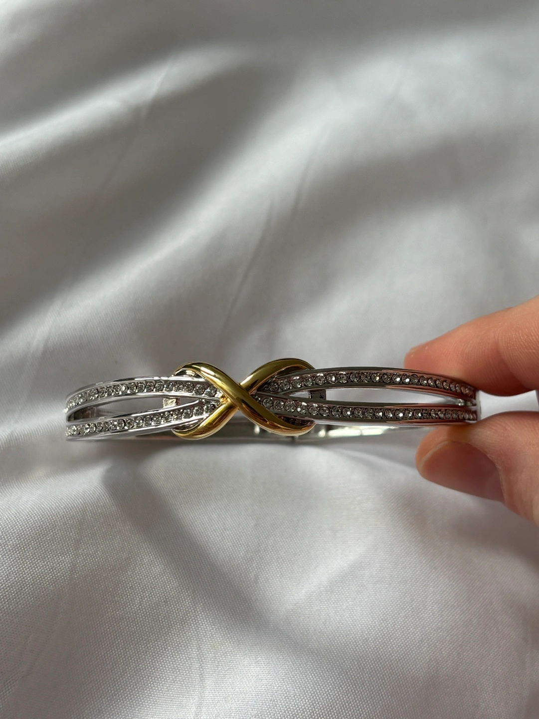 Beautiful two-tone bracelet, with yellow gold infinity symbol and intersecting clear crystal-lined silver details. Clasp closure. Weighs 31 g. 5A cubic zirconia diamonds and Austria crystals. Metal Type: Gold Plated, Lead Free & Nickel Free & Allergy Free https://www.amazon.co.uk/dp/B075QF1XLT/ref=sspa_mw_detail_0?ie=UTF8&psc=1&sp_csd=d2lkZ2V0TmFtZT1zcF9waG9uZV9kZXRhaWwp13NParams&th=1 https://www.amazon.co.uk/Angelady-Infinity-Bracelets-Bracelet-Magnetic/dp/B07VC82N47 Cash only. Pick up at RBC Bathurst and Sheppard or see my bio for other location options! I’m available to answer any questions :) #valentines
