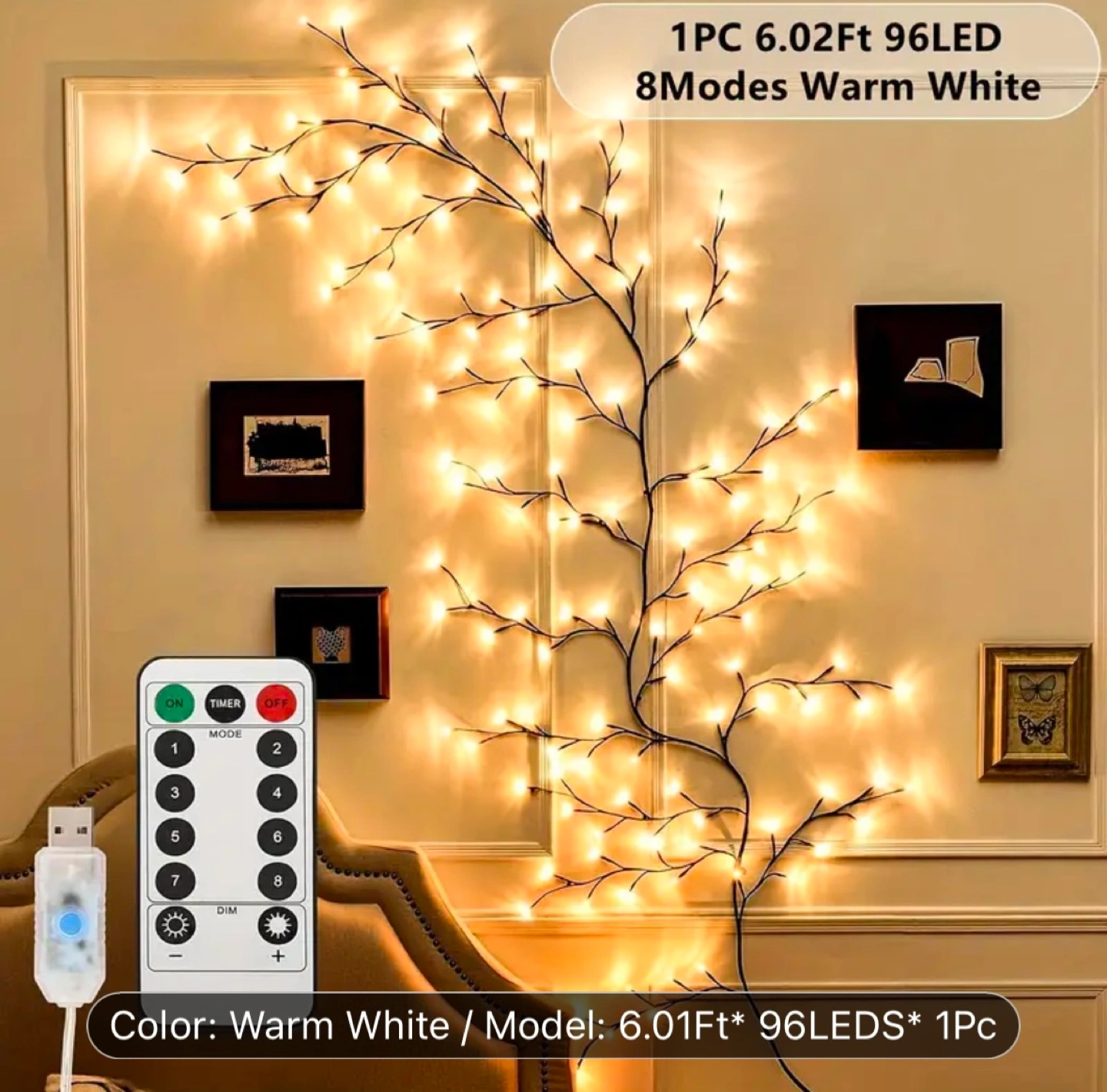 Bendable Willow Vine Light 72/96 LED, White Birch Tree Branch Lights with 8 Modes, USB Powered Indoor Decorative Atmosphere Lamp with Infrared Sensor, IP44 Rated for Bedroom, Living Room, Garden, Party, Festival, Christmas, Birthday Gift, perfect for Christmas gifts, holiday office, bedroom, hotel, party, restaurant decoration