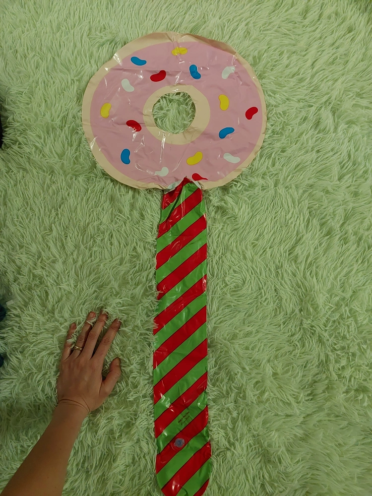 Fun summer pool toy. Inflatable donut design with striped handle. Great for kids.