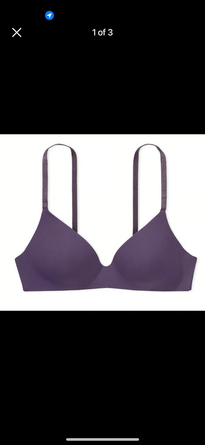 Purple T-shirt bra. Smooth fabric. Adjustable straps. Lightly padded. Excellent support.
