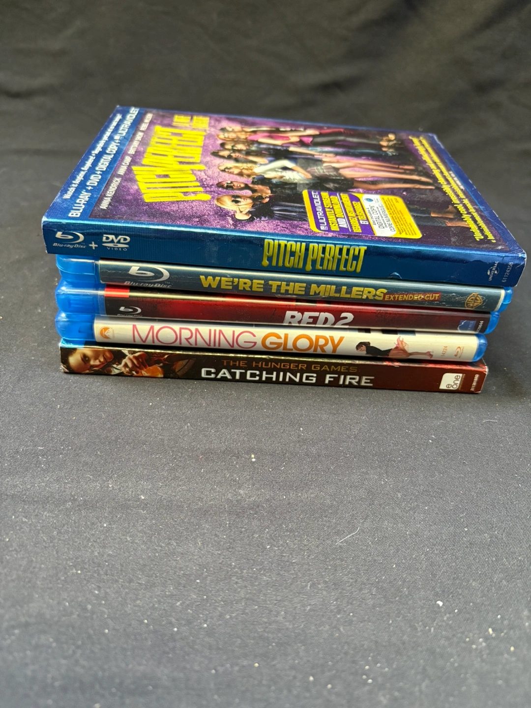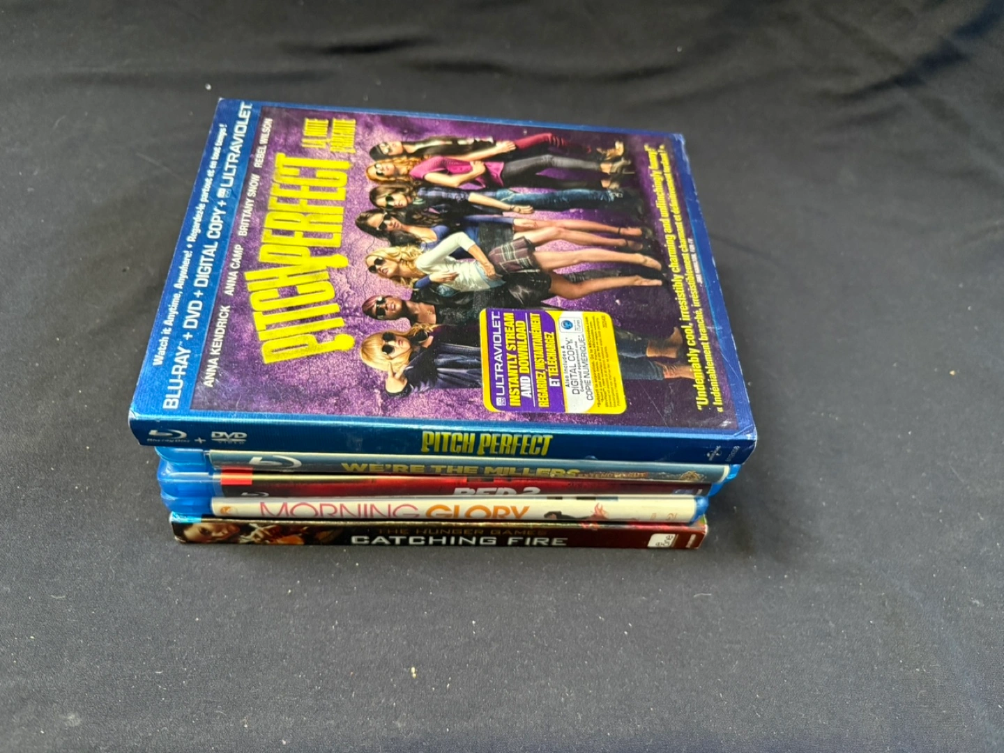 Good condition Bundle includes five movies: Pitch Perfect (Blu-ray + DVD), We're the Millers (Blu-ray, Extended Cut), RED 2 (Blu-ray), Morning Glory (Blu-ray), and Catching Fire (Blu-ray). Pre-owned. Great for movie night $5 for ALL Pick up Victoria Park & O’Connor area