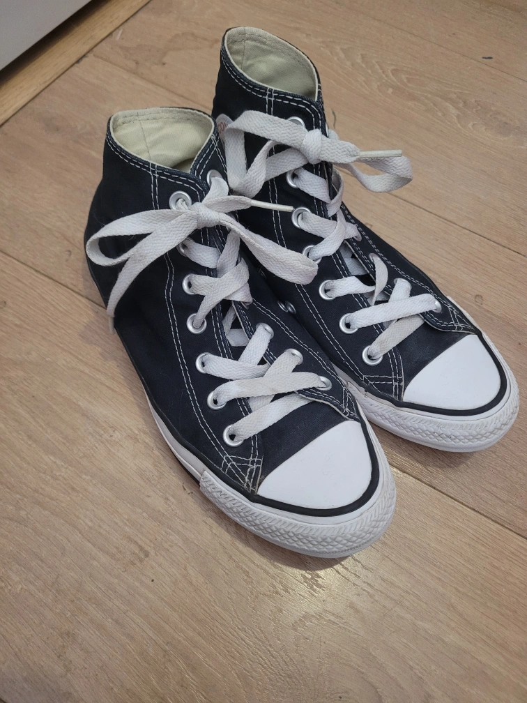 Pair of Black high top Converse All Star sneakers. Classic design, canvas material. Size: US 6.5 **** Cash Only **** **** Pickup Only **** **** No E-transfers **** **** Serious Inquiries Only/ Serious Offers Only ****