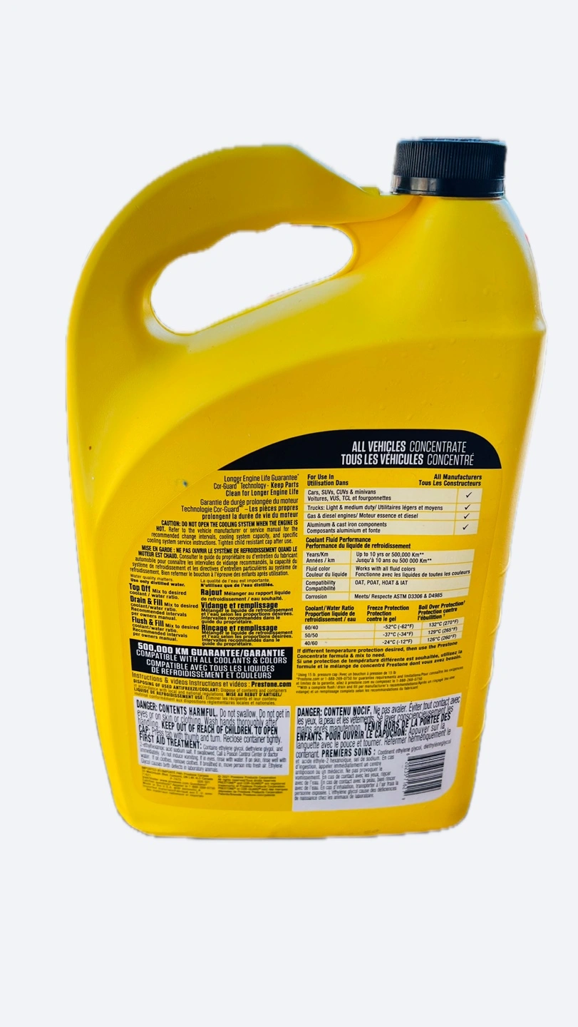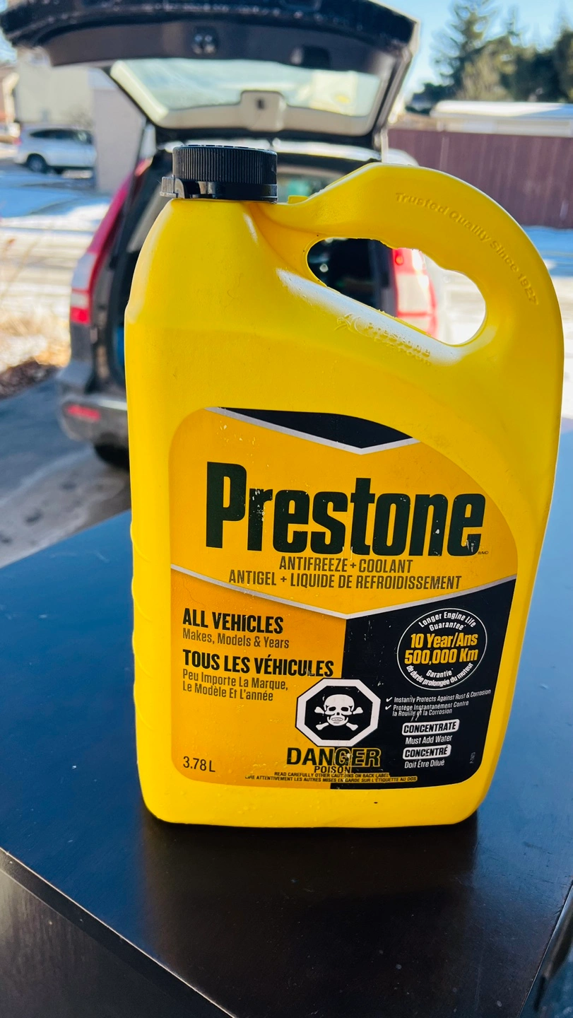 Prestone All Vehicles antifreeze and coolant. 3.78L Ready to use jug. 10-year/160,000 km guarantee. For all makes, models, and years.
