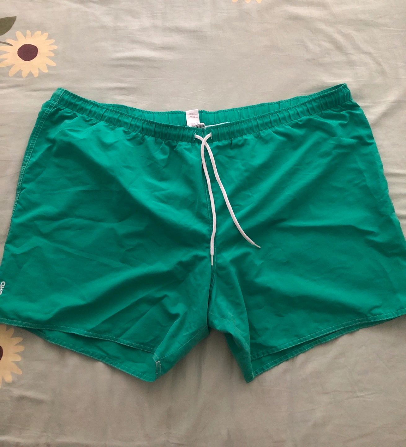 Men's teal swim trunks. Elastic waistband with drawstring. Mesh lining. Size XXXL. Free shipping: If you spend more than 20 dollars in my list, you can get free shipping ( only in the old Toronto) Downtown pick up Cash only
