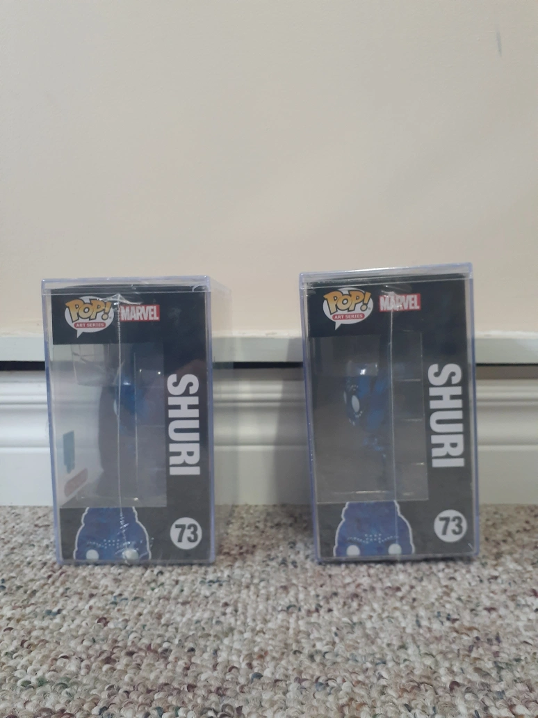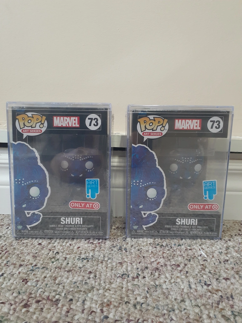 Two Funko Pop! vinyl figures. Marvel Art Series Shuri. Number 73. Artist: Nikolas Draper-Ivey. In protectors. 1 for $25 2 for $40