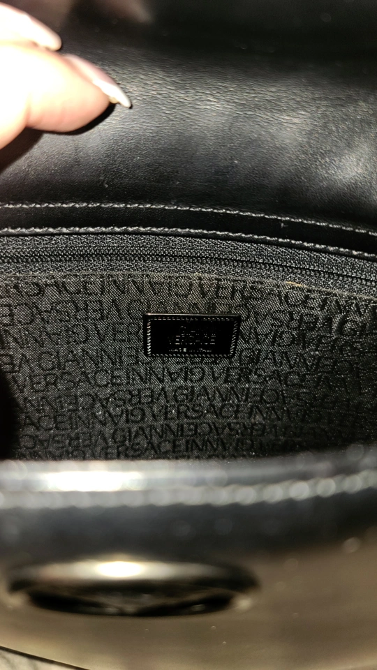 Gorgeous simple black vintage Gianni Versace handbag. Black leather. Features Medusa head emblem. Multiple straps. Zip closure. Interior lining. Made in Italy. #vintagehandbaglovers #vintageversace #gianniversace ***Authentic*** Purchased off & authenticated via therealreal (tag still attached as indicated in photos) Bought preloved & never used