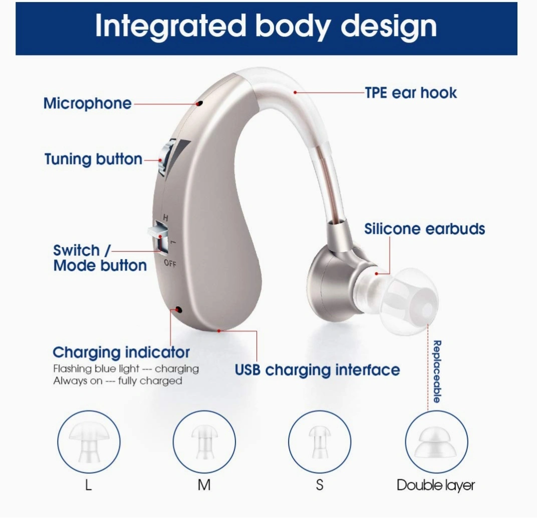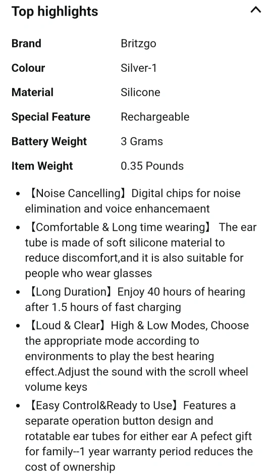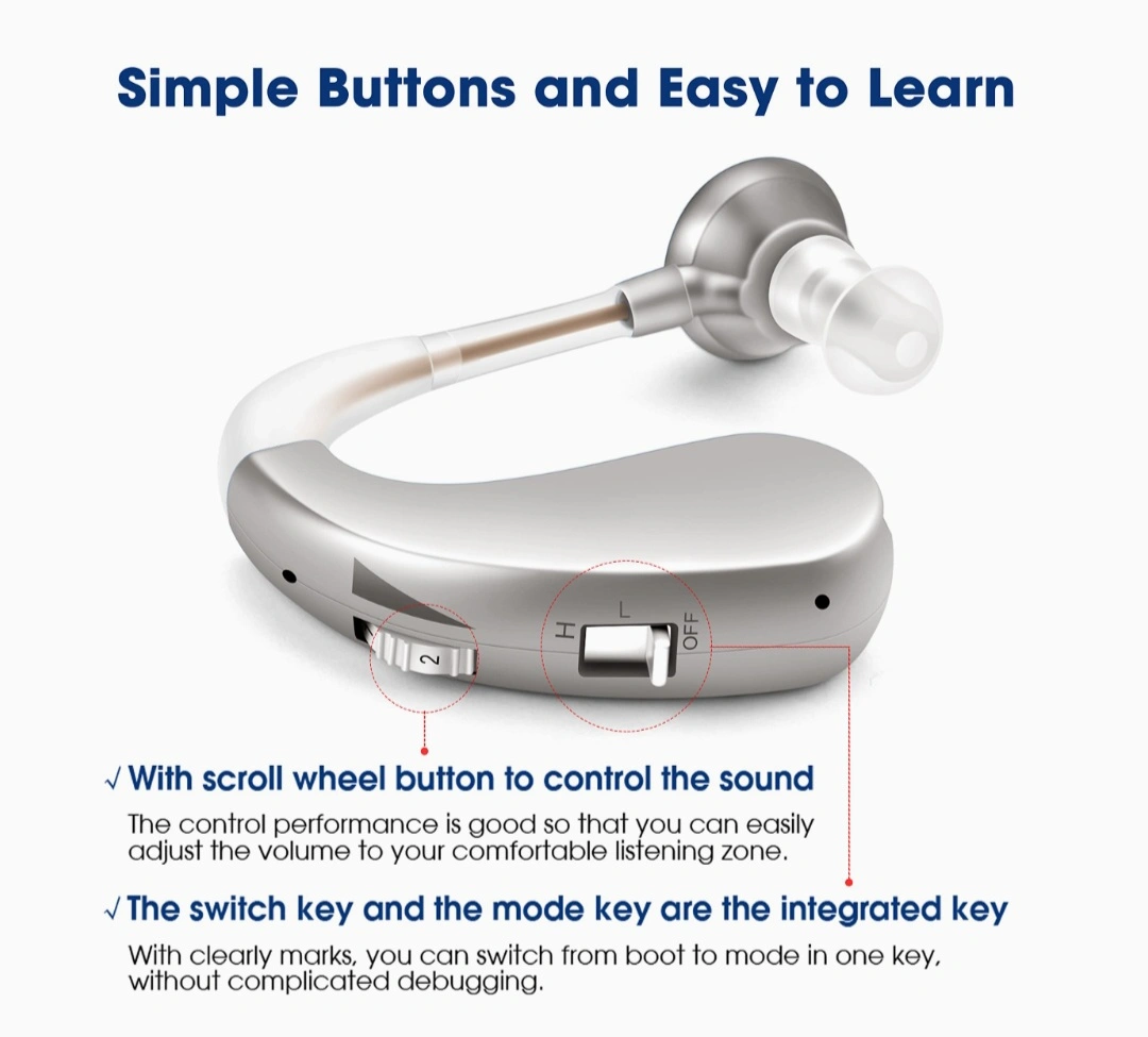 COMFORTABLE and DISCREET Hearing Aid. Features a scroll wheel for volume control and multiple listening modes. LONG BATTERY LIFE, up to 40 HOURS of USE after a 1.5-hour charge. Includes multiple earbud sizes. Lightweight and EASY to USE.