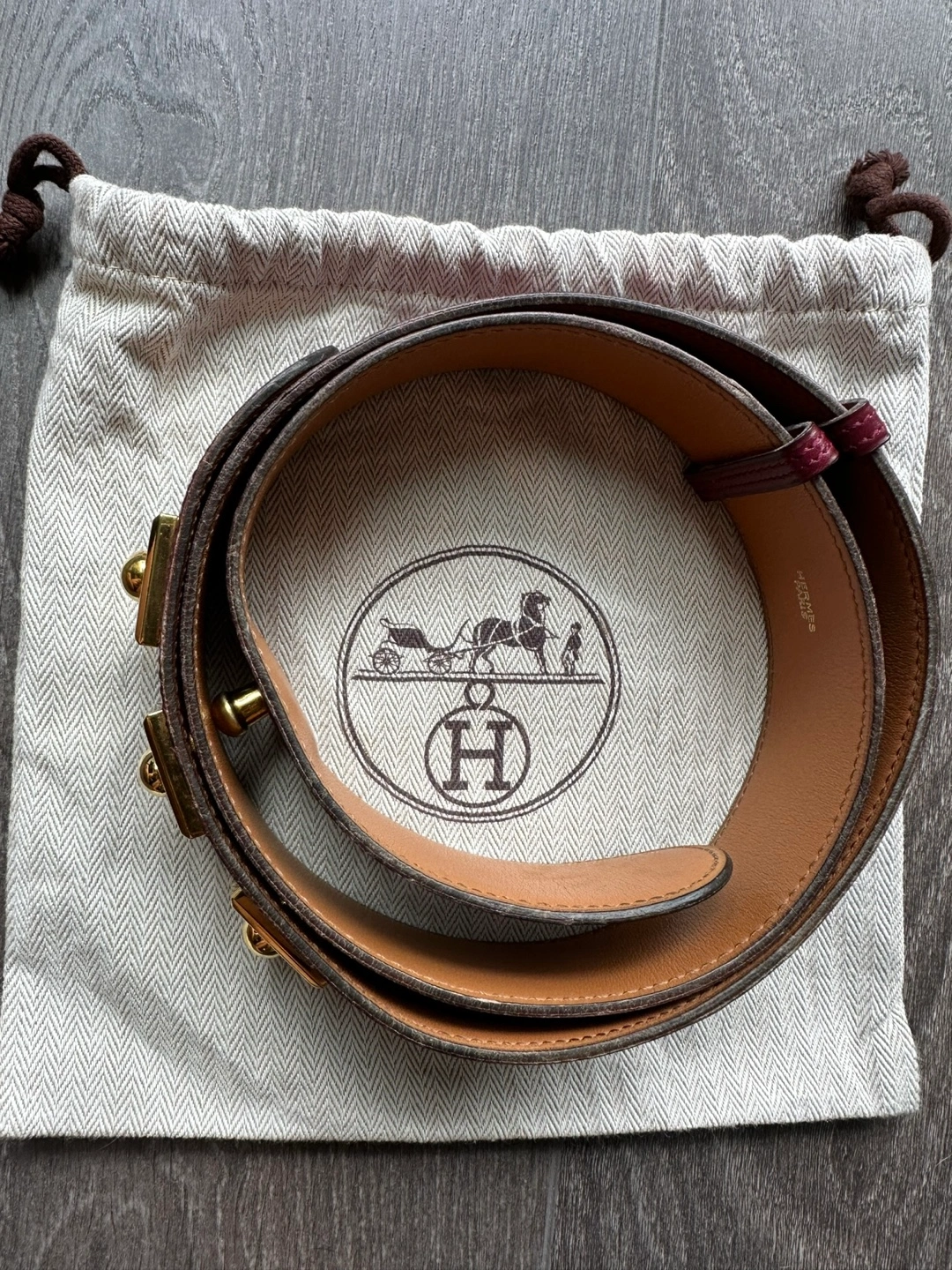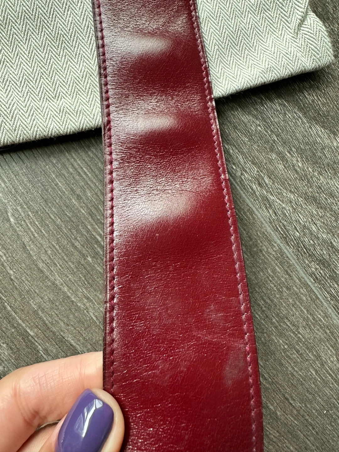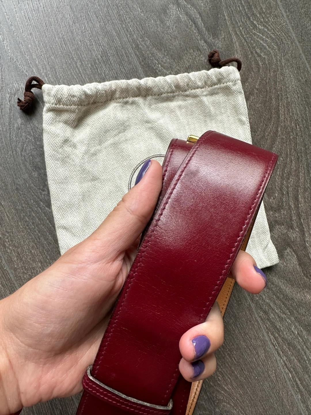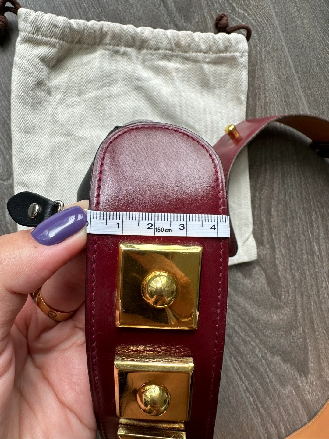 Hermes Red Leather Piano Belt W/ Gold Hardware leather Made In: France Color: Red, gold Hardware: Goldtone Materials: Leather, metal Closure/Opening: Slide through stud closure Overall Condition: Good pre-owned condition with imperfections shown Please ask questions and check all photos for condition