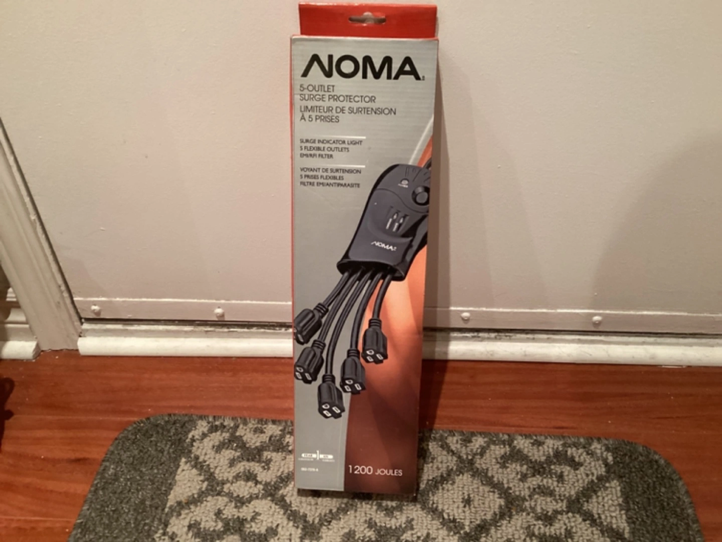 New in box. 5-outlet surge protector with surge indicator light. 1200 joules. Features 5 flexible outlets and EMI filter.
