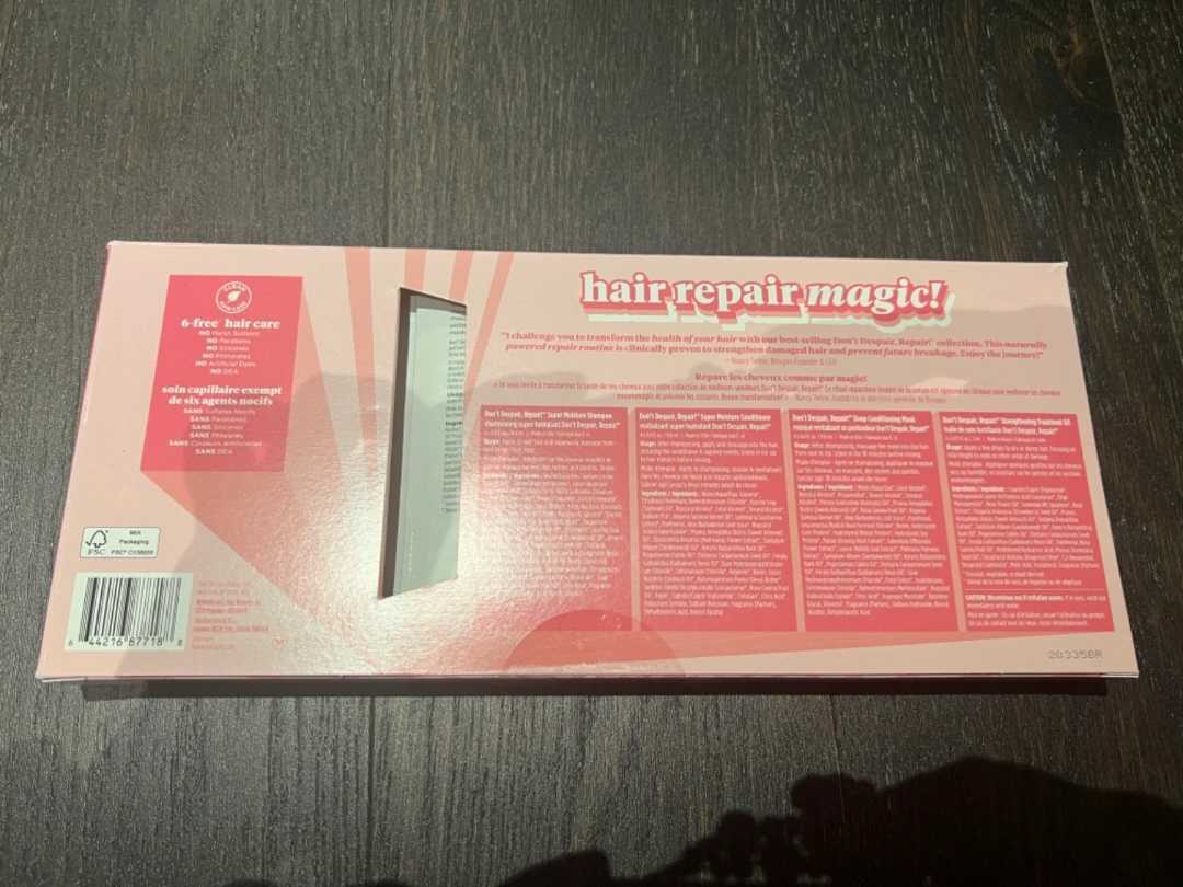 14-day hair repair challenge kit. Includes various products for stronger, healthier hair: shampoo, conditioner, hair mask, and hair oil.