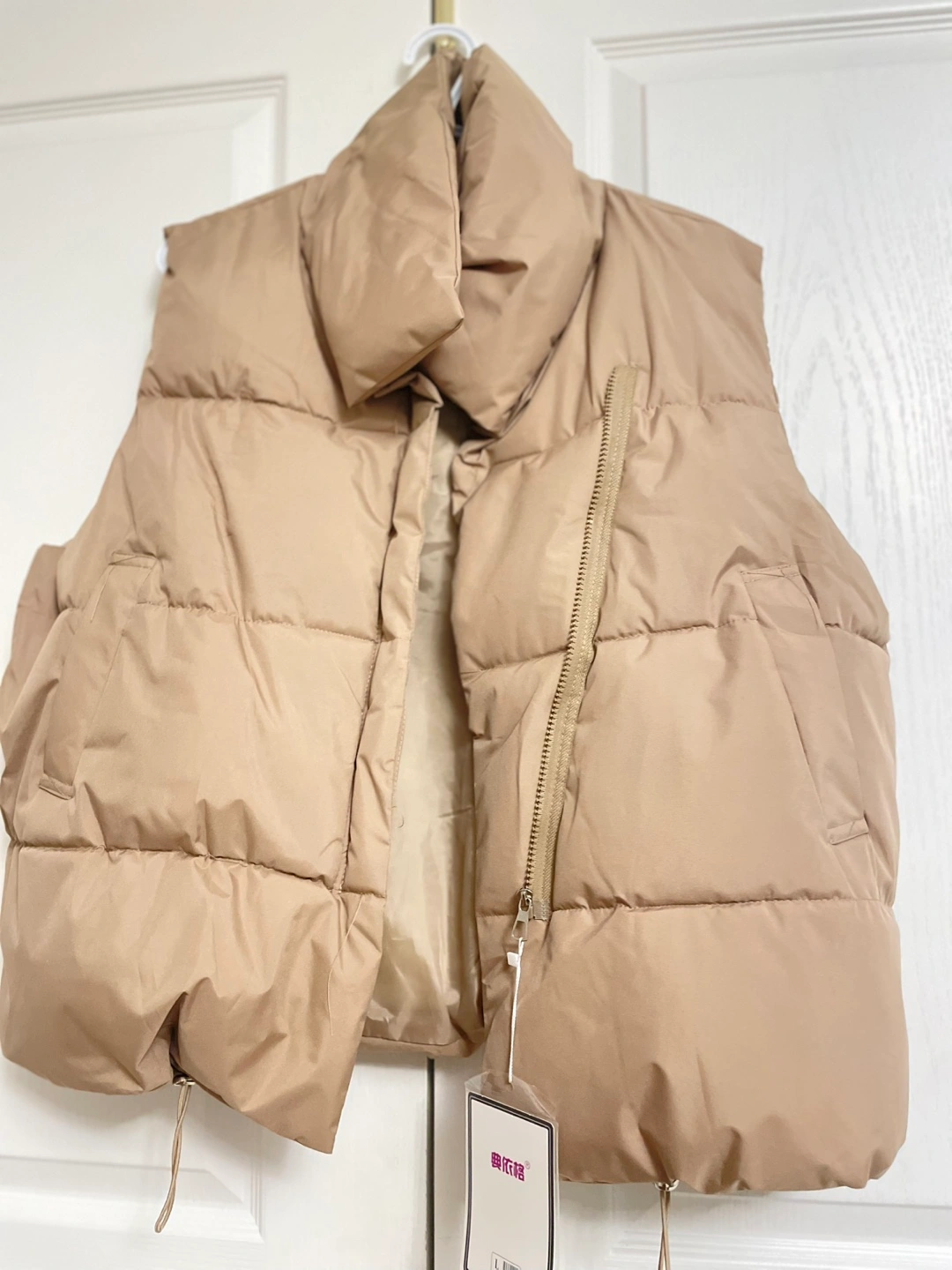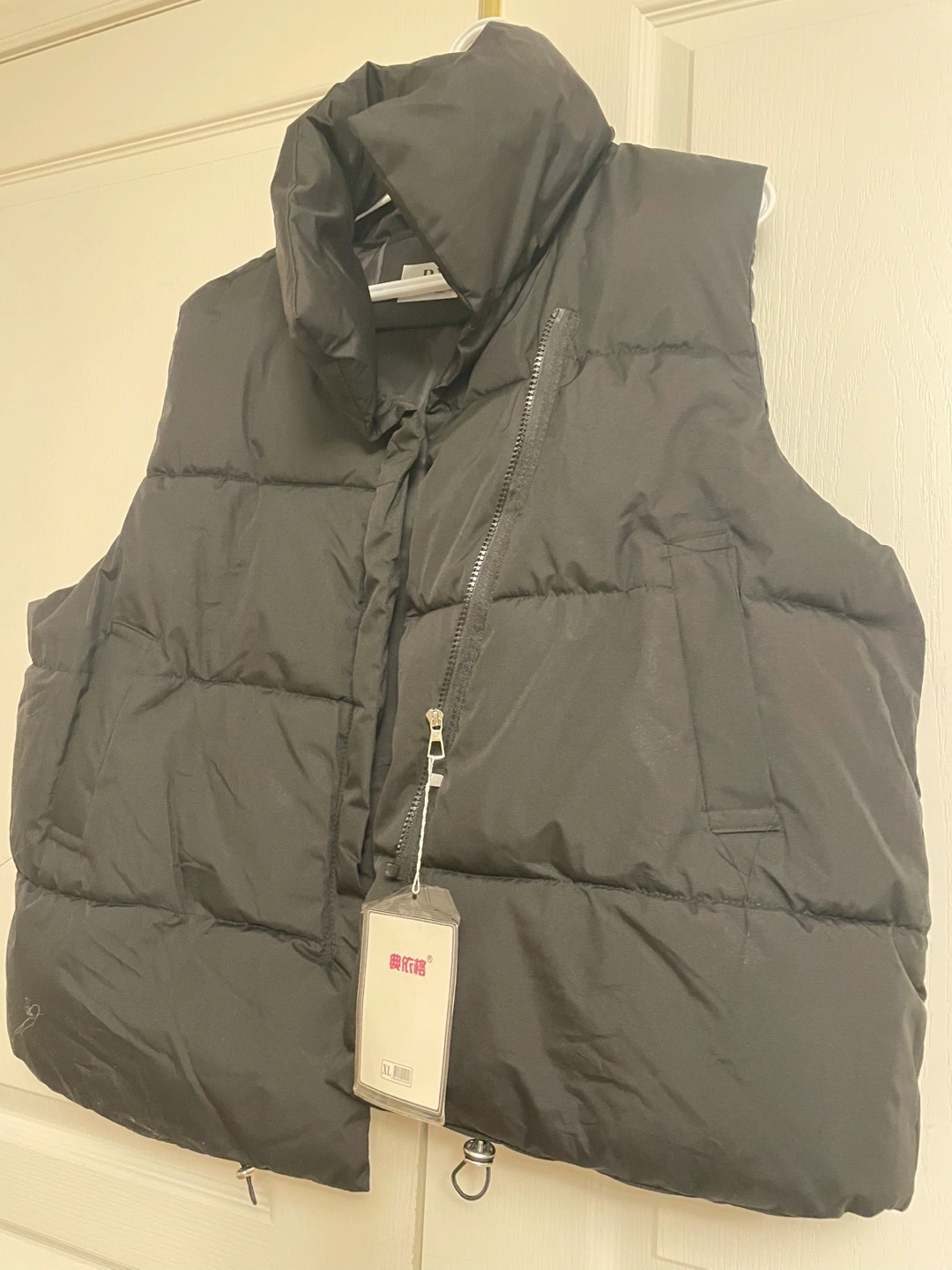 Two UNISEX stylish puffer vests. Asymmetrical zipper closure. High collar. Warm and comfortable. Perfect for layering. Size L. $10 each. Or take both for $18. Cash Pick up Aurora Walmart or Markham.