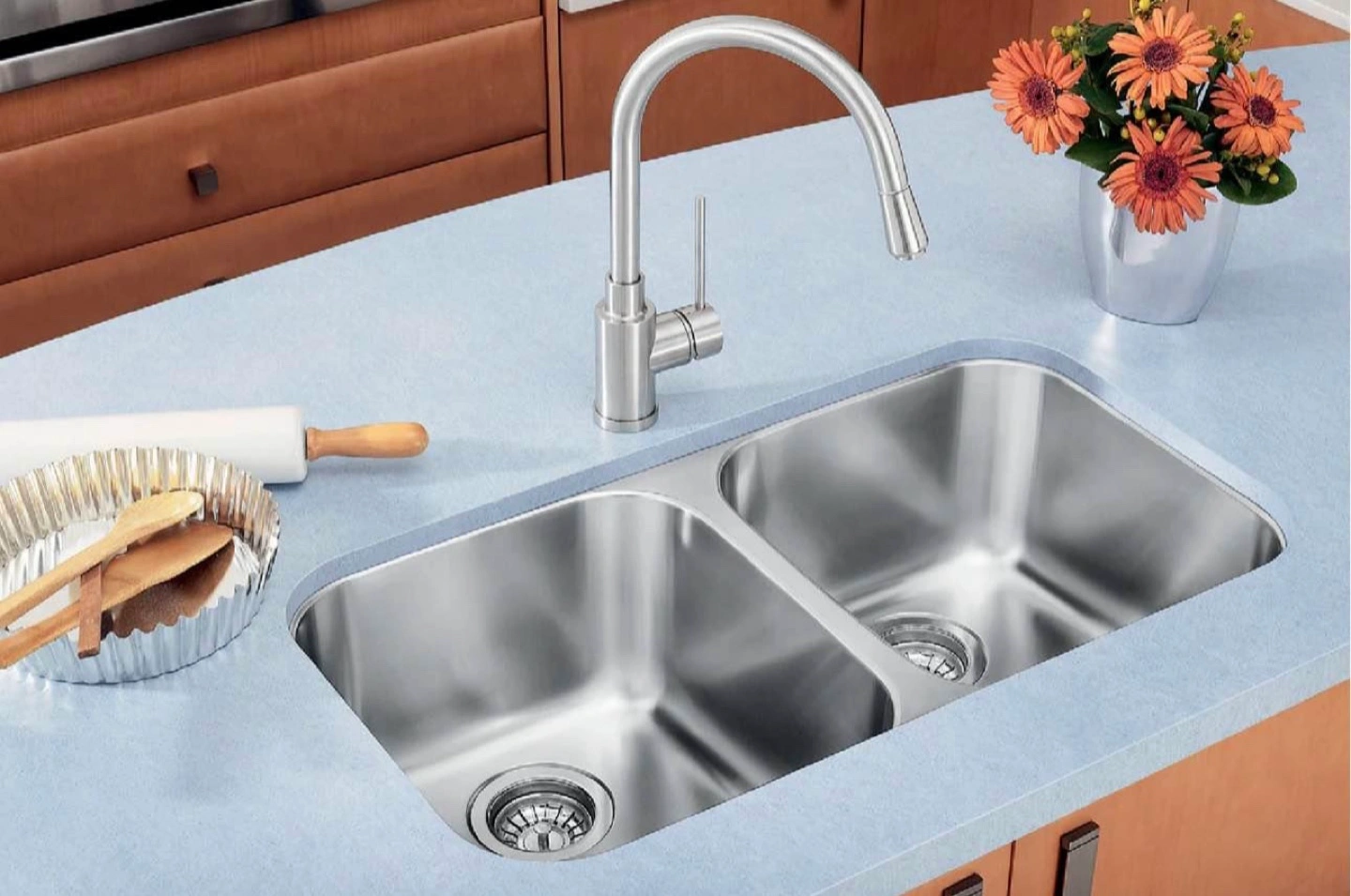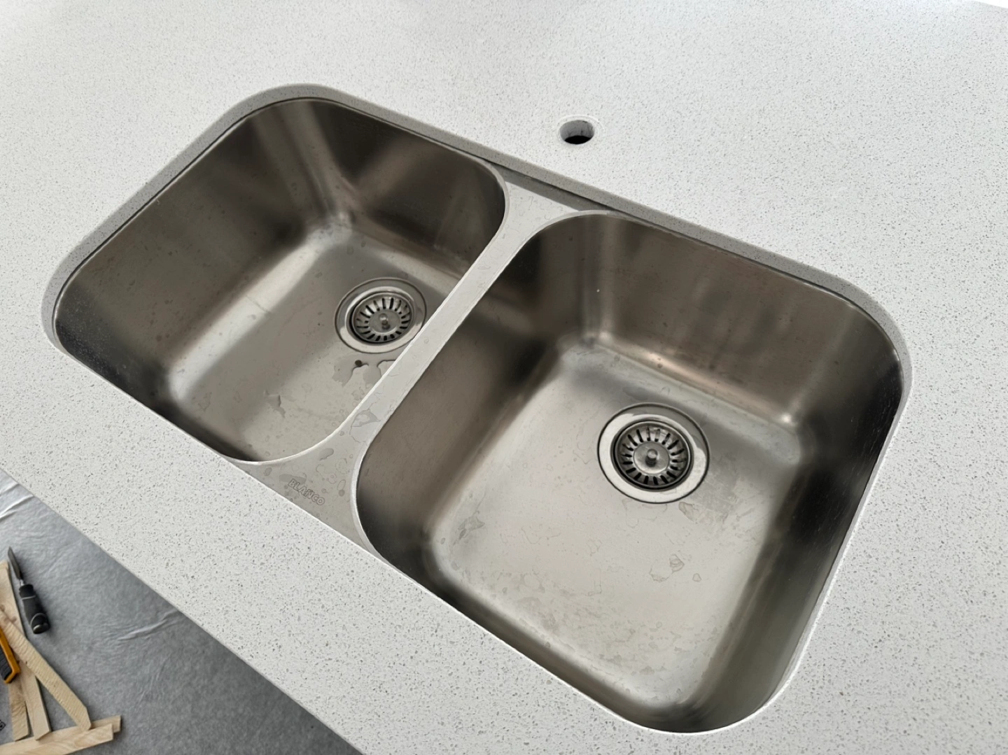 - stainless steel double sink - under mount - strainers included - brand new never been used NOTE: I have the BLANCO Harmony Kitchen Faucet with Pulldown Spray available
