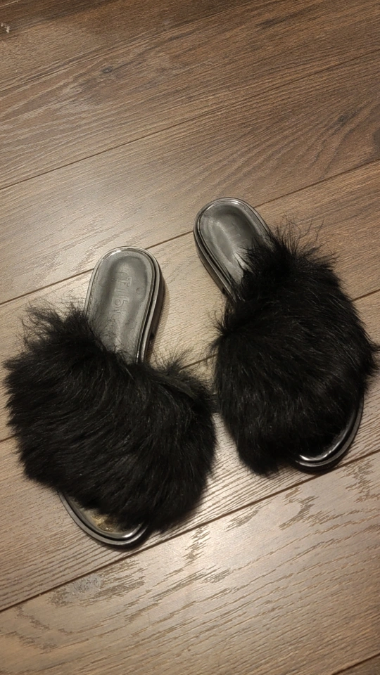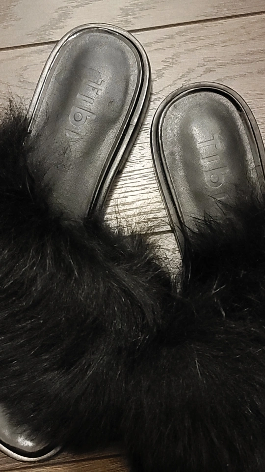 Tibi brand. Brazilian made. Real lamb shearling Fuzzy black slides. Fur origin from Brazil Open-toe design. Sorry, no box.