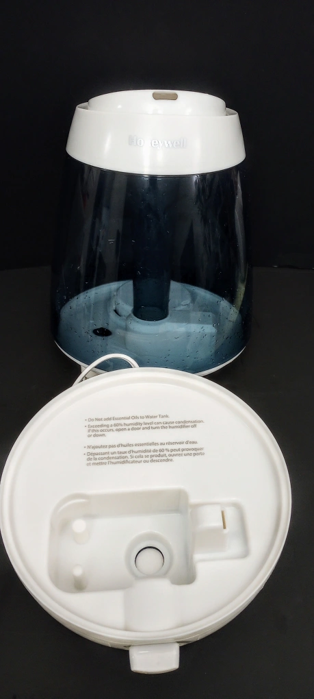 Honeywell Cool moisture Ultrasonic Humidifier, Model: HUL 535 WC, is gently used and its in excellent cosmetic condition. Fully functional. Please see pics. - PRICE: FIRM . - Item would be tested at the time of purchase. - For Cash and Pick Up Only. - 3rd Party transactions and e-transfers are NOT acceptable. OVERVIEW: This filter-free, ultra-quiet, ultrasonic humidifier provides cool visible mist! It features adjustable moisture output settings, directional mist outlet, transparent water tank & auto shut-off. Many find that a humidifier for the home, bedroom or nursery is an essential part of a good night’s sleep when the air is dry, during winter , in allergy season or when sick. FEATURES: • CAPACITY: 1-gallon (3.79-litre) tank capacity features a wide opening that's easy to fill & clean. • AREA COVERAGE: It is ideally suitable for medium sized room. • It is capable of running up to 24 hrs uninterrupted per filling. ULTRA QUIET: It works very quietly and do not cause any interference in good night's sleep. • DIMENSIONS: 9.17" L x 8.15" W x 13.19” H (23.3 x 20.7 x 33.5 cm. • MOST TRUSTED BRAND: Voted most trusted Humidifier brand by Canadian shoppers based on the BrandSpark Canadian Trust Study, years 2019 to 2022.