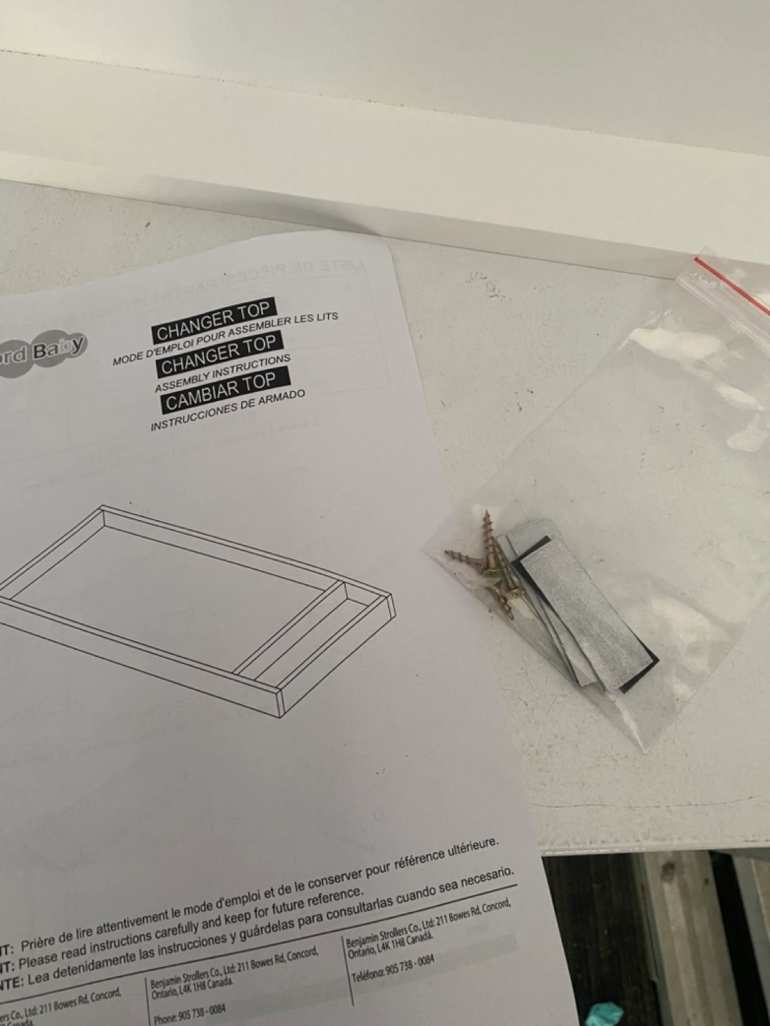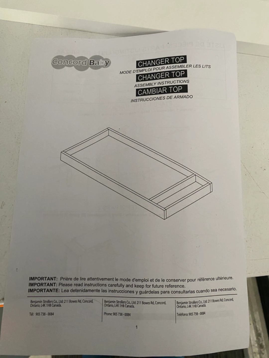 White changer top. New in box. Assembly instructions included. Part of a baby crib. Cash Only