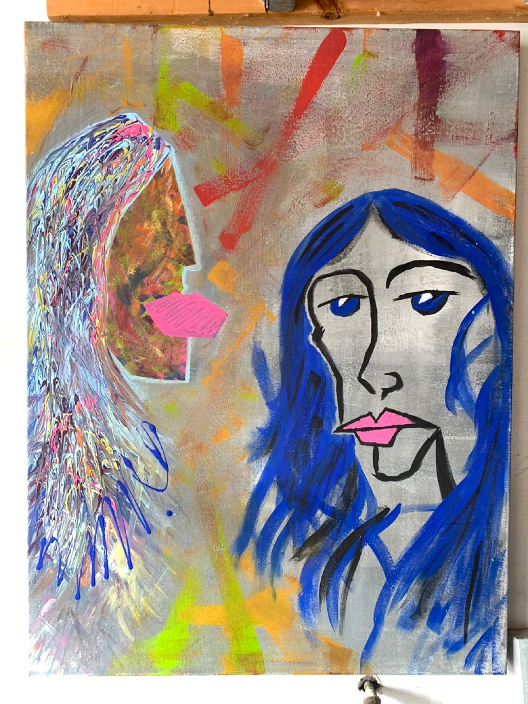 “Urban Queens” is part of my graffiti inspired series painted on a gallery canvas. 30 inch x 40 inch canvas. 1.5 deep.