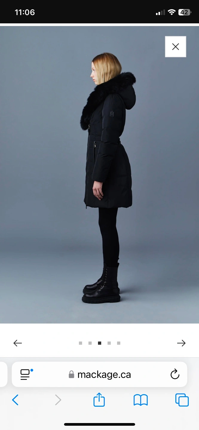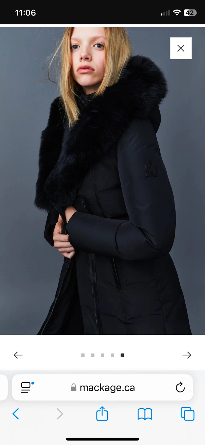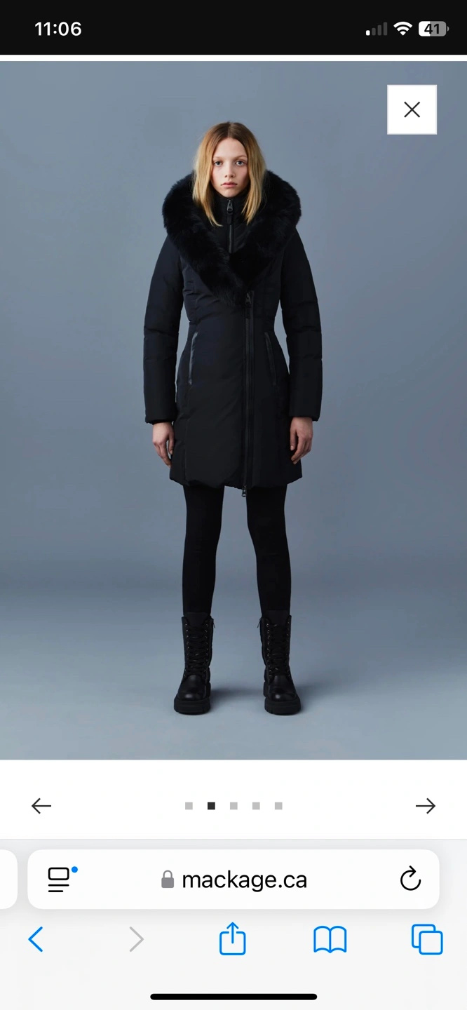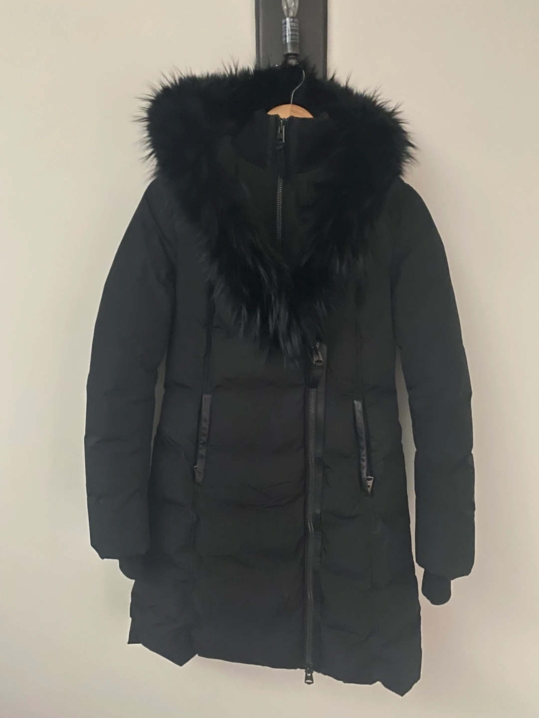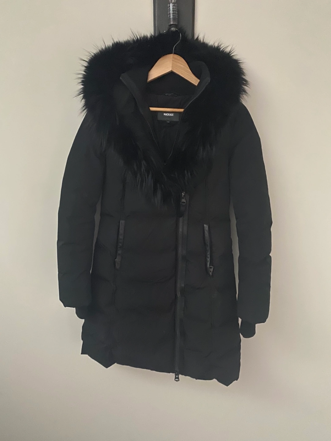 Women's black down-filled Mackage winter coat in size medium, and featuring a black fur trimmed hood. Just gorgeous and In excellent condition!