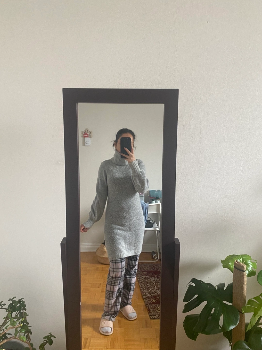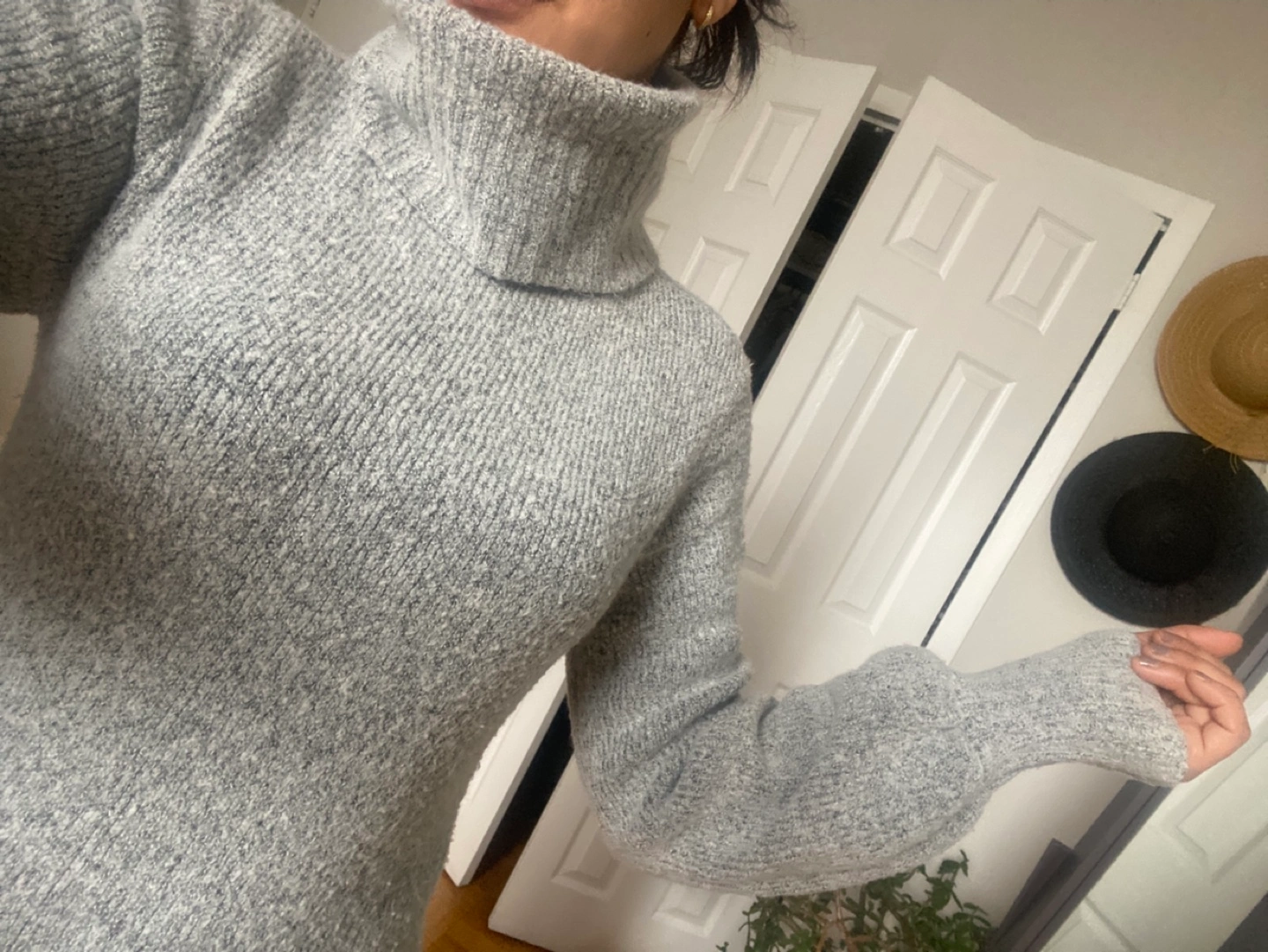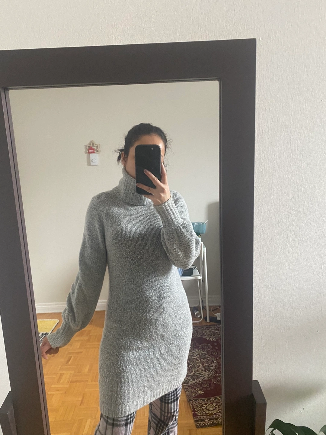 Cozy sweater dress. Long sleeves, turtleneck. Soft material. Great for fall and winter.