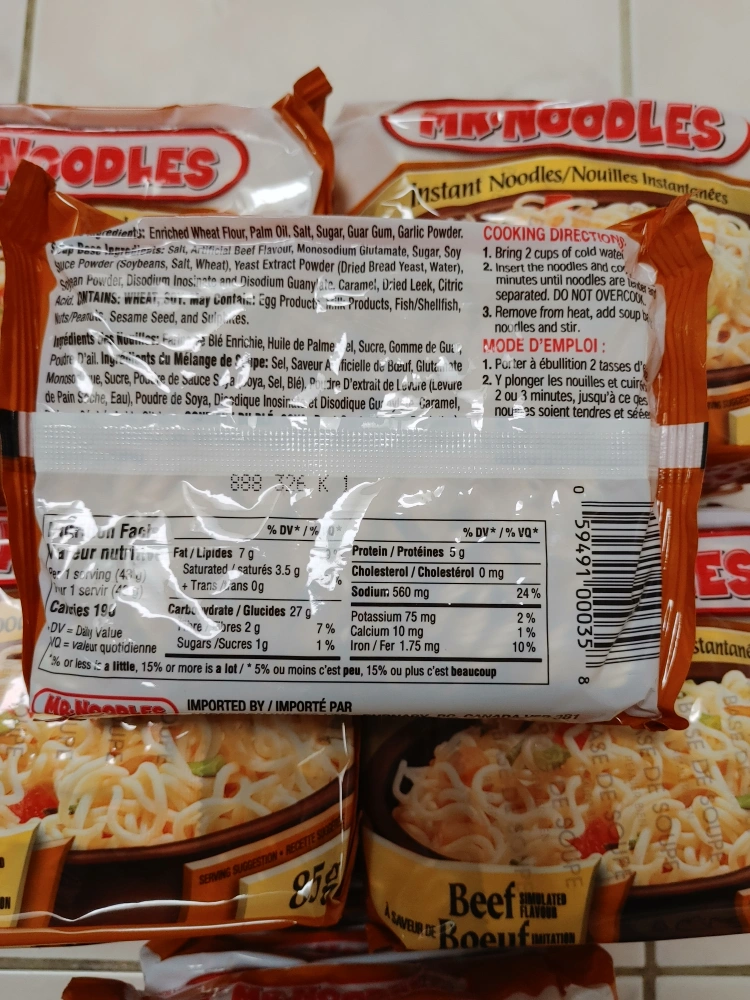 🥕21 PACKAGES OF MR. NOODLES BEEF FLAVOUR INSTANT NOODLES 🥕THERE IS NO EXPIRY DATE ON THE PACKAGES. 🥕BEEF FLAVOUR 🥕GREAT ECONOMICAL CHOICE 🥕I AM LOCATED IN THE YONGE AND STEELES AREA FOR PICKUP. THANKS😊😊😊