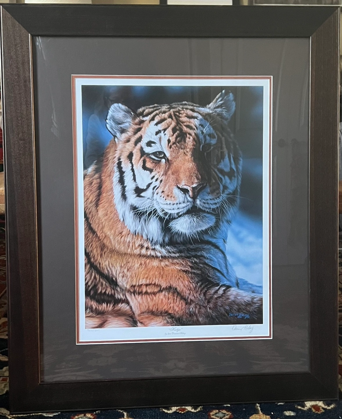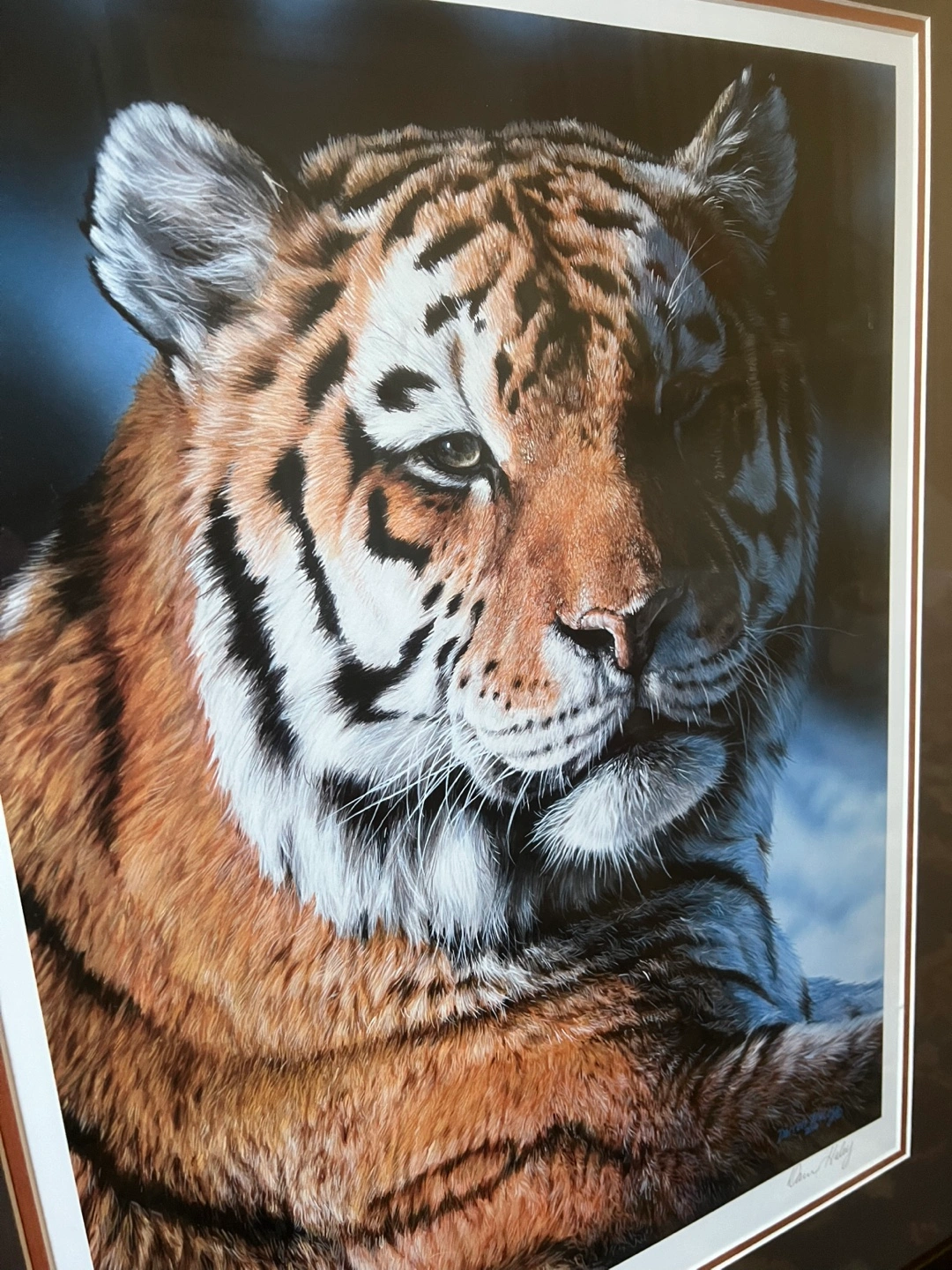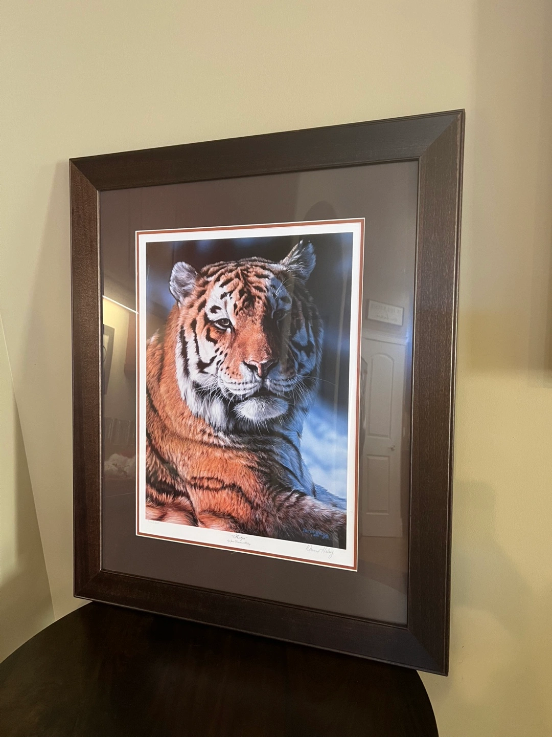 Meet “Katja” Siberian Tiger Isn’t she magnificent and beautiful? Ducks Unlimited Canada limited edition print Professionally framed (acid-free matting,attractive wooden frame to enhance and complement the print etc…) Numbered 962/1300 Signed Darren Haley Gallery quality Ready to hang Great condition 27.5” x 33” (entire frame) Wild life admirer? Photography enthusiast? Art lover? Perfect art piece for your office, study, living room… Note - I removed original backing paper in order to fully clean the glass, the new paper backing was installed but I retained a piece of the original with Ducks Unlimited logo and information about the print (see my photos) Asking $40 Interested? Message me and please check my other listings…